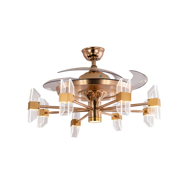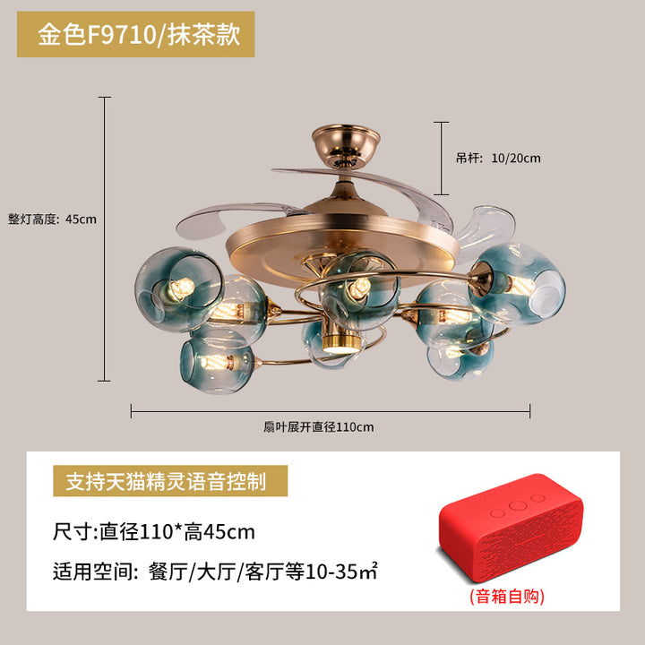 Whole house smart golden magic bean invisible fan light Nordic crystal light luxury ceiling fan light living room dining room integrated lamp