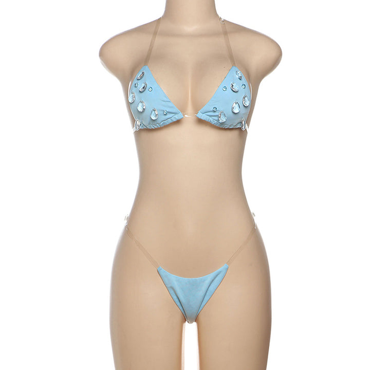 Wholesale 2025 new summer women's clothing sexy babes raindrop three-dimensional decoration neck bikini set