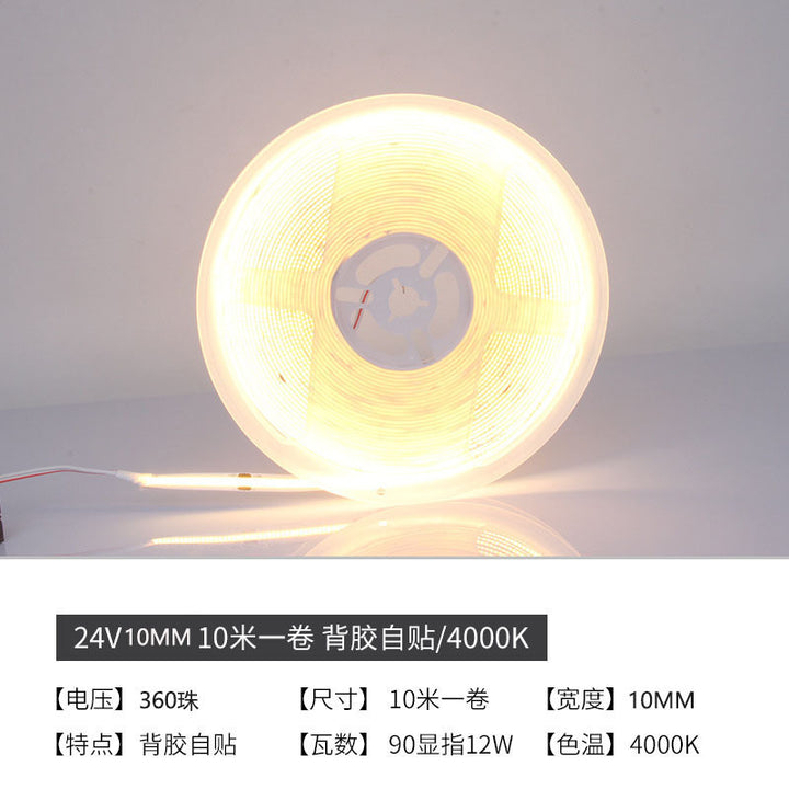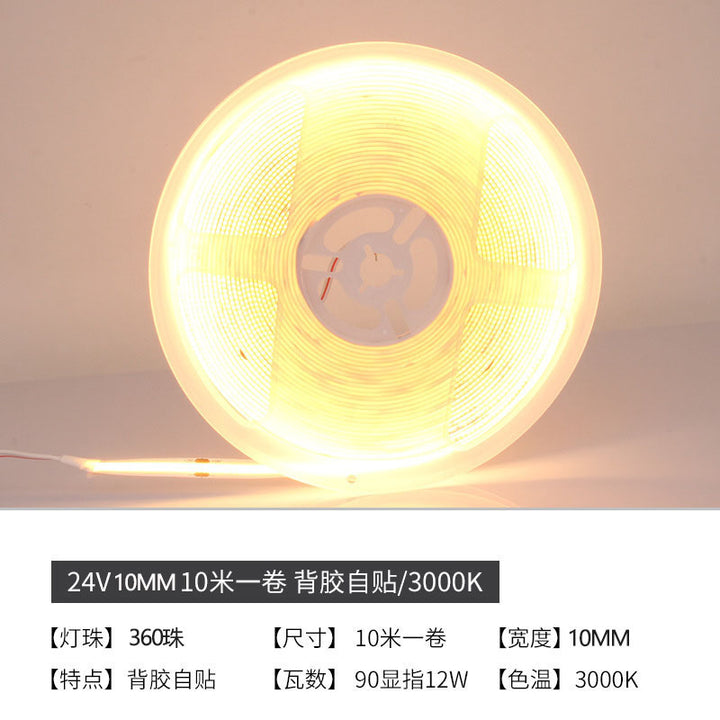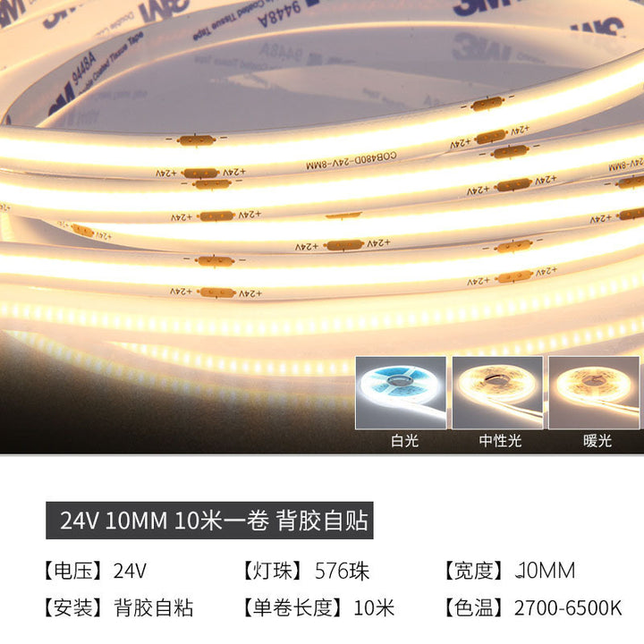 DC24V monochrome, board width 10mm 360 light 12W one meter, monochrome running water light strip (not waterproof), DC24V dual color temperature, board width 10mm 576 light 9W one meter (not waterproof) |