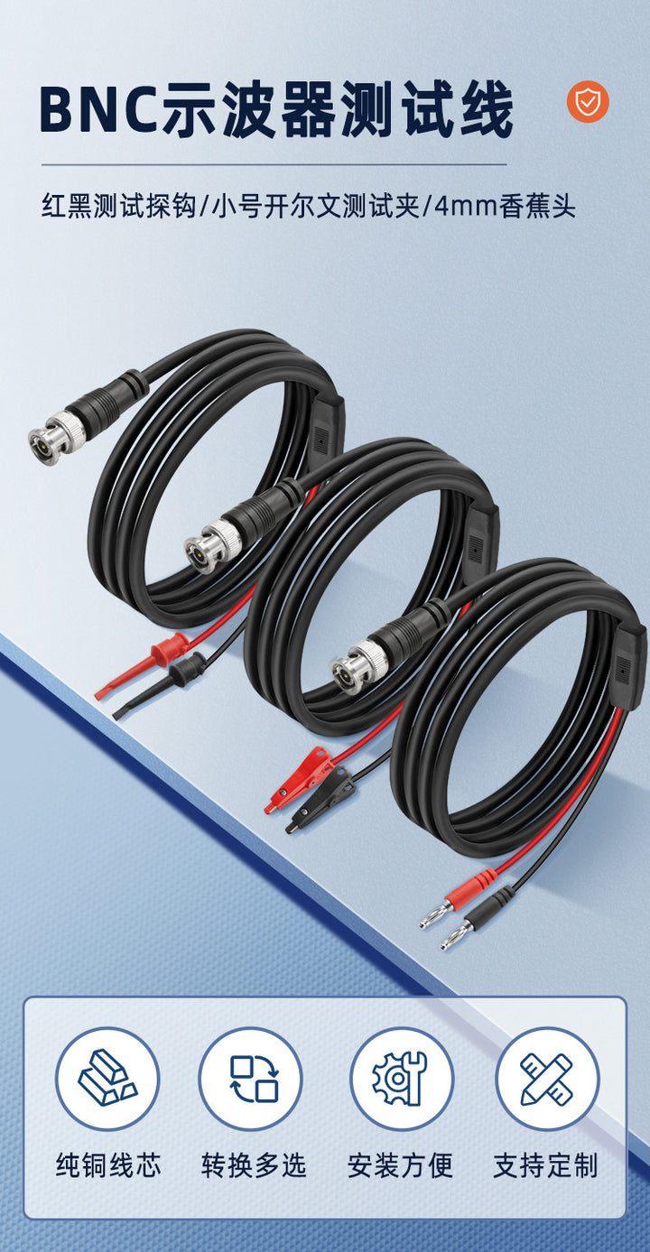 BNC male to red and black small Kelvin test clip 1m, BNC male to red and black small Kelvin test clip 1.5 meters, BNC male to red and black small Kelvin test clip 2 meters, BNC male to red and black 4MM banana head 1m, BNC male to red and black 4MM banana head 1.5m, BNC male to red and black 4MM banana head 2 meters, BNC male to red and black test control hook 1 meter, BNC male to red and black test control hook 1.5 meters, BNC male to red and black test hook 2 meters |