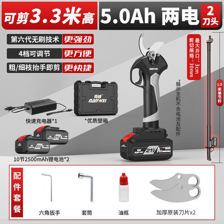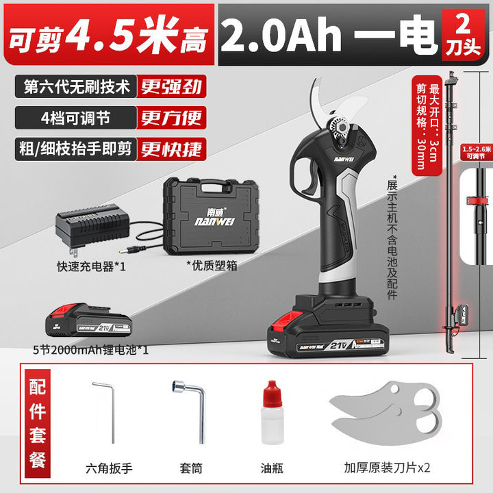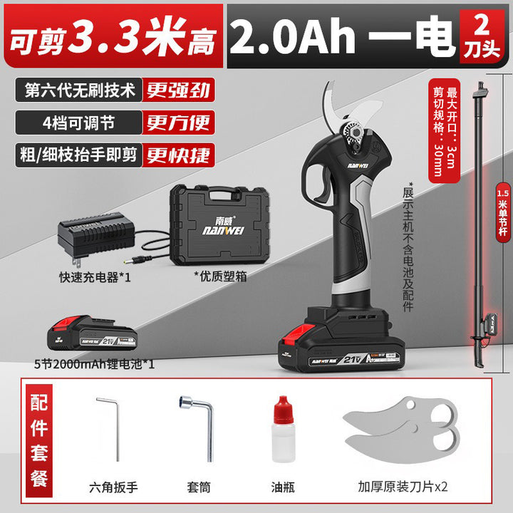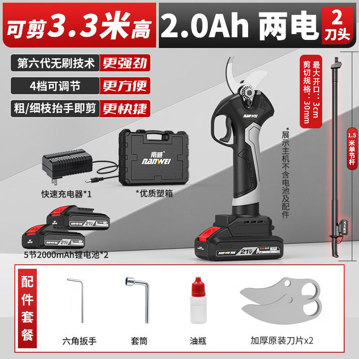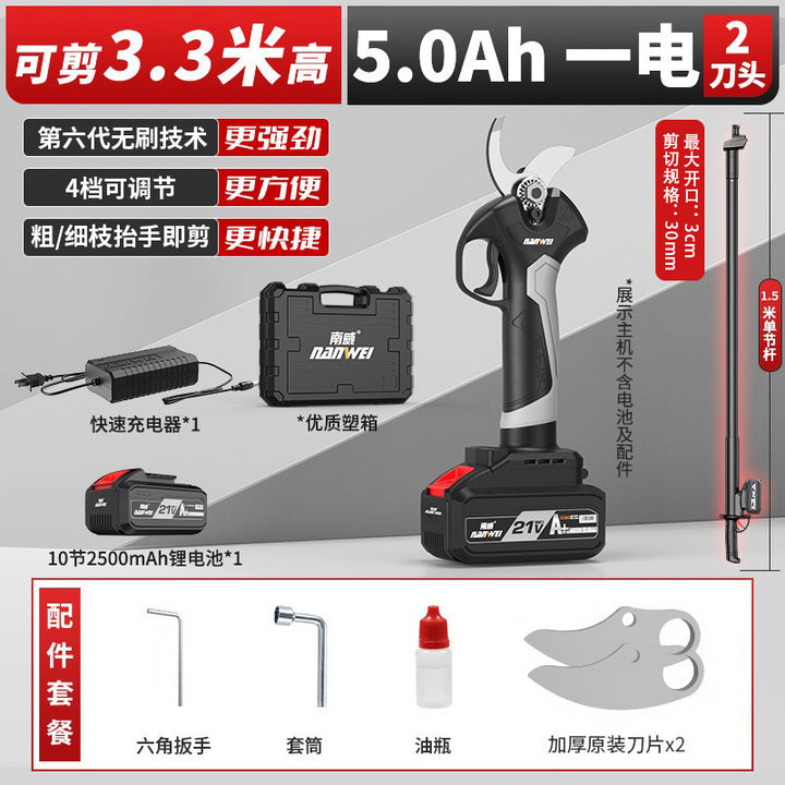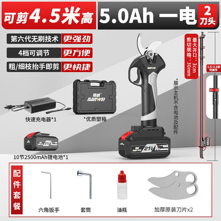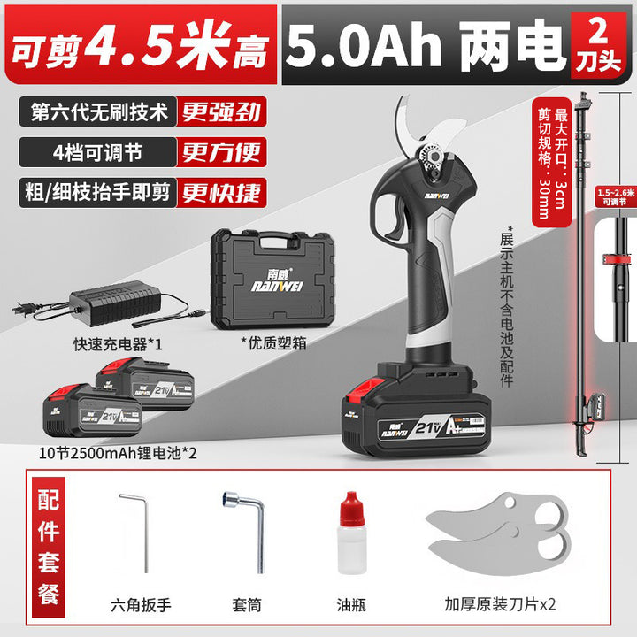 Brushless [Fruit Scissors + Electric Chainsaw · 4.0AH] Two Electrics + Knife Head, Brushless [Fruit Scissors + Electric Chainsaw · 5.0AH] Two Electrics + Knife Head, [The following can be cut 3.3 meters high and brushless high branch shears], [Cut 3.3 meters high] 2.0AH one electricity + knife head, [Cut 3.3 meters high] 2.0AH two electricity + knife head, [Cut 3.3 meters high] 4.0AH one electricity + knife head, [Cut 3.3 meters high] 4.0AH two electricity + knife head, [Cut 3.3 meters high] 5.0AH one electricity + knife head, [Cut 3.3 meters high] 5.0AH two electricity + knife head, [The following can cut 4.5 meters high brushless telescopic high branch shears], [Cut 4.5 meters high] 2.0AH one electricity + knife head, [Cut 4.5 meters high] 2.0AH two electricity + knife head, [Cut 4.5 meters high] 4.0AH one electricity + knife head, [Cut 4.5 meters high] 4.0AH two electricity + knife head, [Cut 4.5 meters high] 5.0AH one electricity + knife head, [Cut 4.5 meters high] 5.0AH two electricity + knife head |