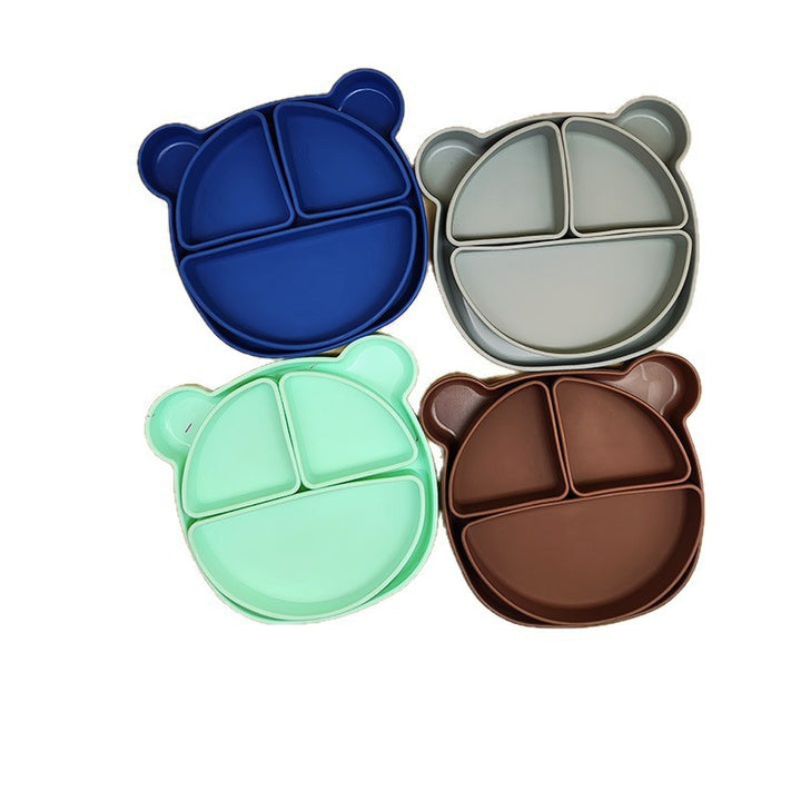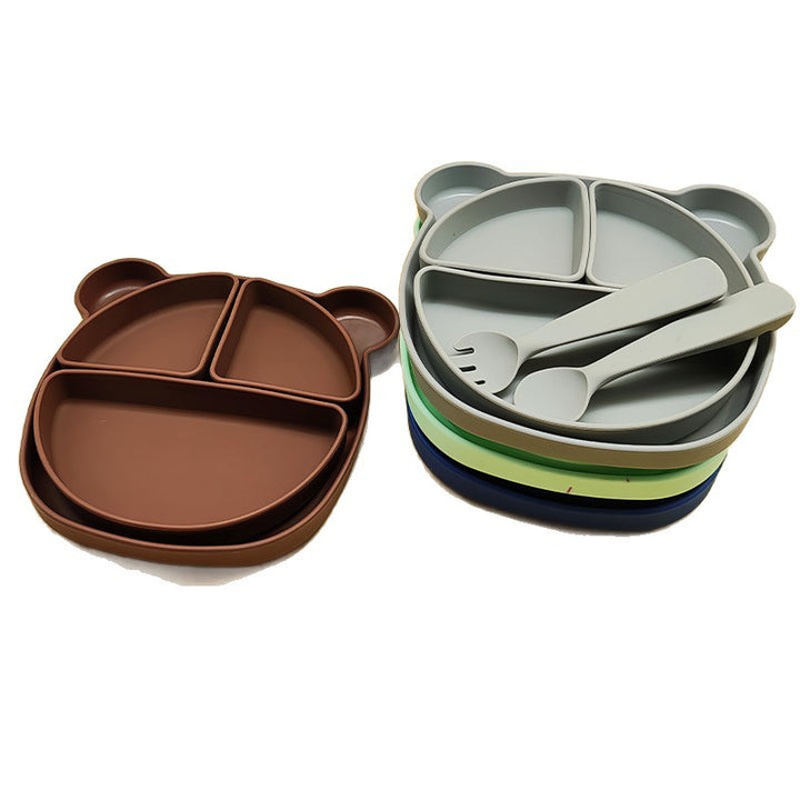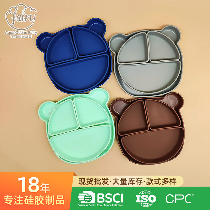 Wholesale Children's Tableware Set Bear Silicone Plate Grid Tableware Baby Eating Training Dr...