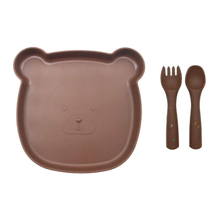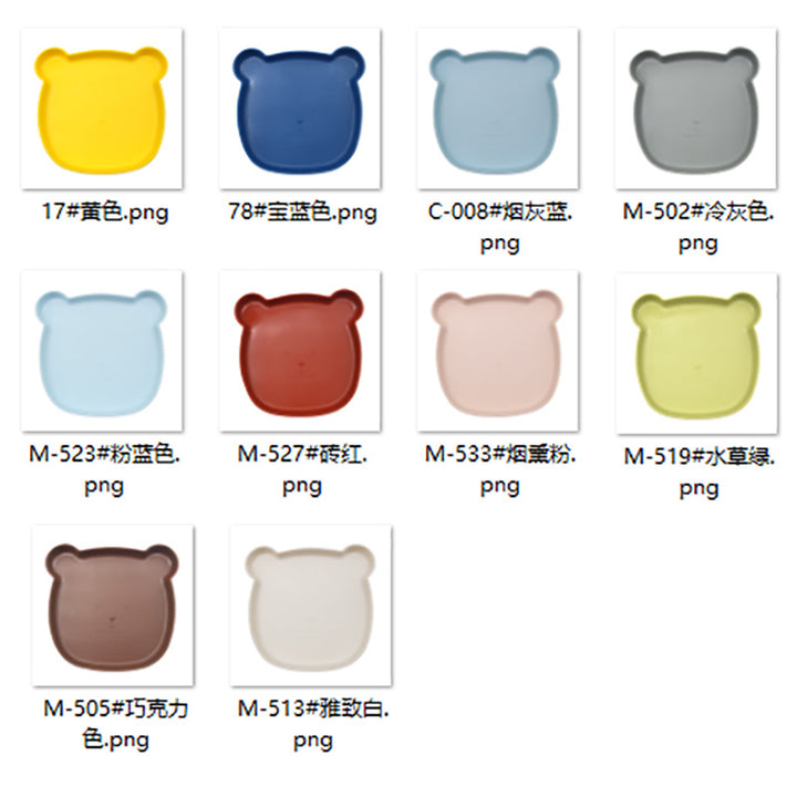 Silicone [bear plate + round handle fork and spoon] chocolate color, Silicone [bear plate + round handle fork and spoon] elegant white, Silicone [bear plate + round handle fork and spoon] cold gray., Silicone [bear plate + round handle fork and spoon] soot blue, Silicone [Bear Plate + Round Handle Fork and Spoon] Smoke Powder, Silicone [bear plate + round handle fork and spoon] brick red., Silicone [bear plate] (random color or contact remarks), Silicone [round handle fork and spoon]) (round handle fork and spoon only) (random color or contact remarks), Silicone [grid plate] (only grid plate) (random color or contact remarks) |
