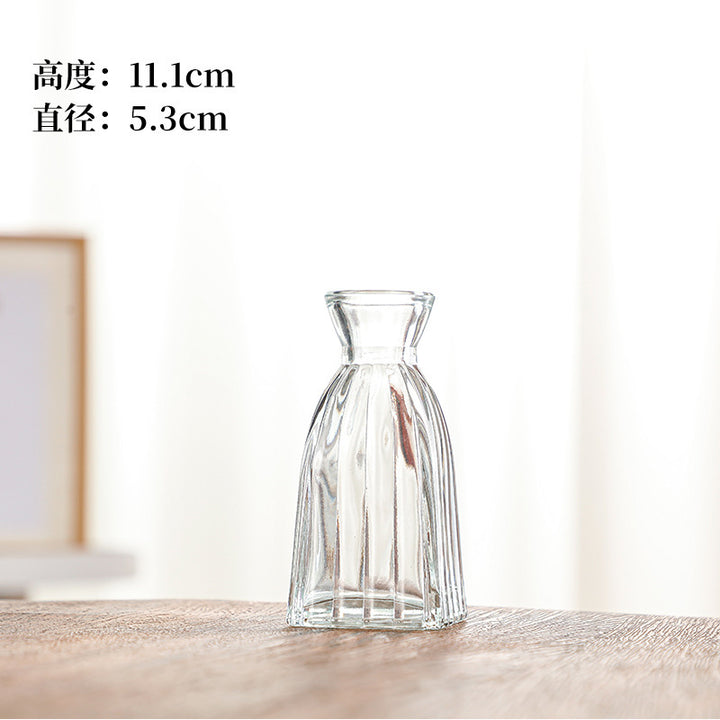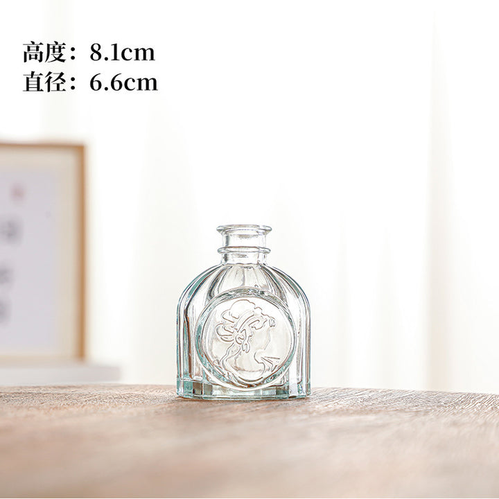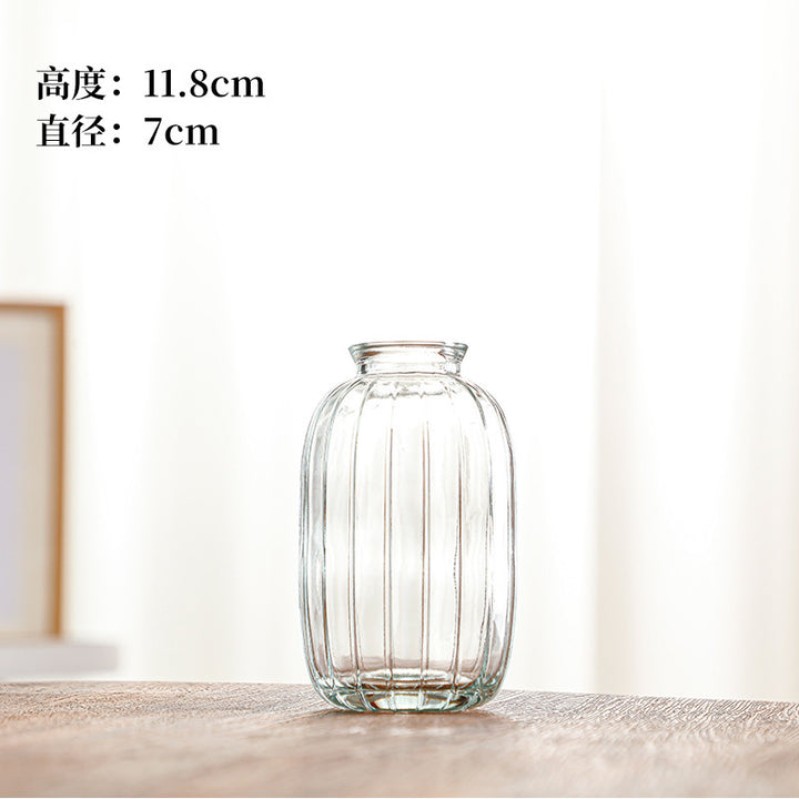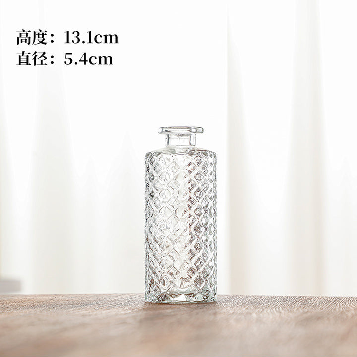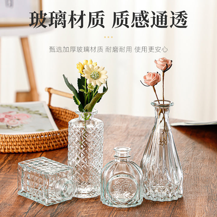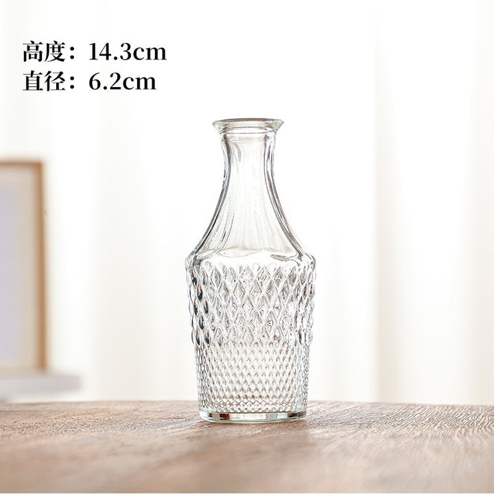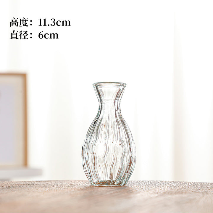 Wholesale custom retro relief glass small vase mini wind transparent hydroponic flower arrangement vase decorative ornament