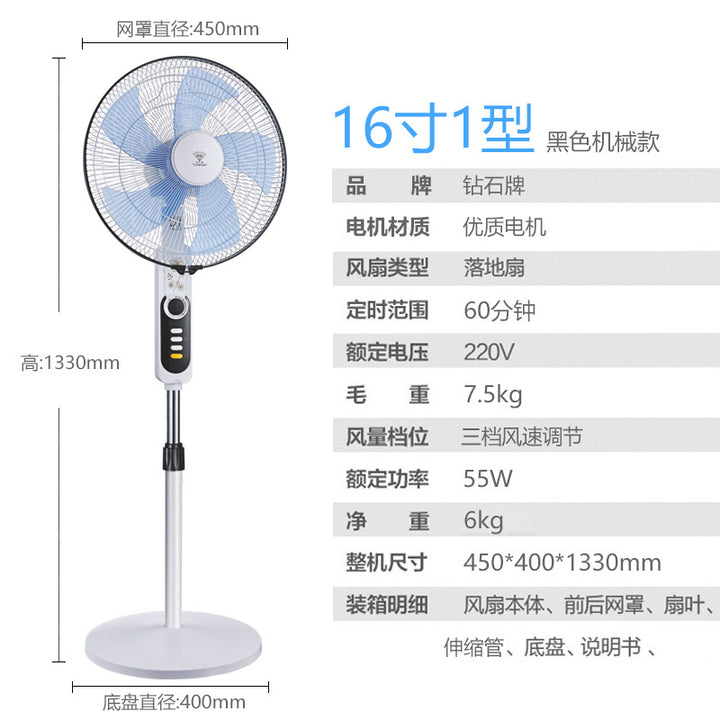 Wholesale Diamond Brand 16 Inch Floor Fan Household Air Conditioning Shaking Head Five Leaves Soft Wind Office Electric Fan Factory Sales