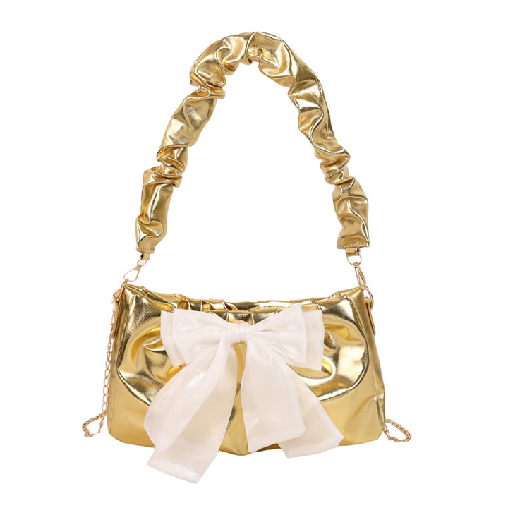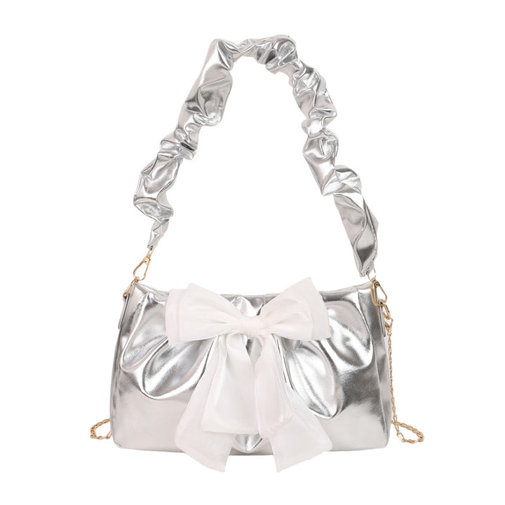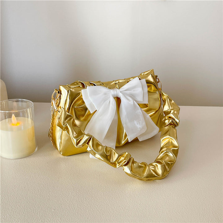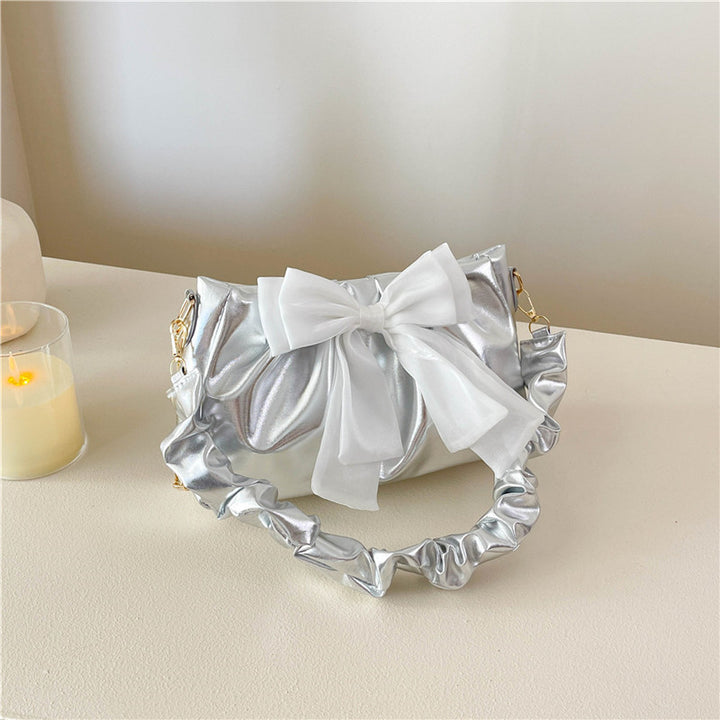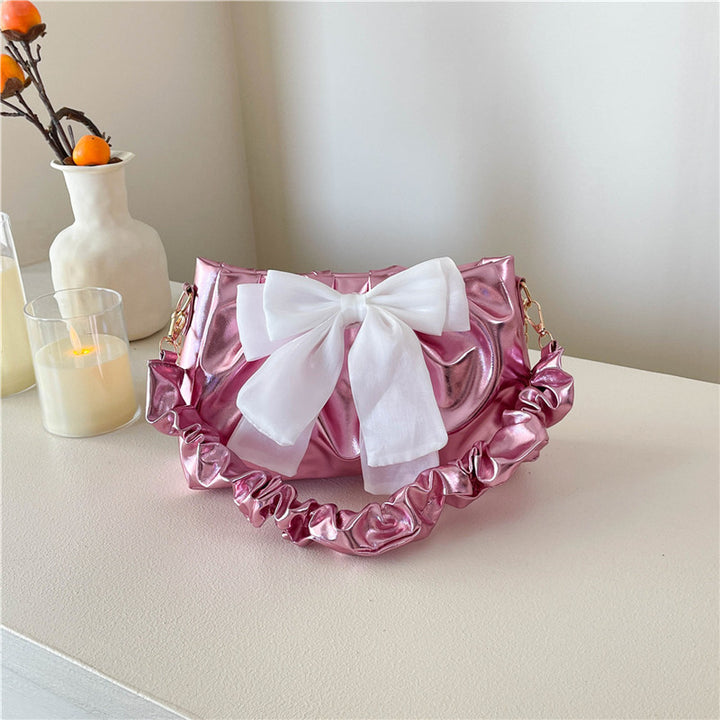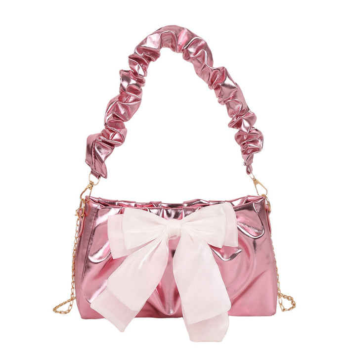 Wholesale fashion pleated portable small square bag women's bag 2025 spring new bow shoulder ...