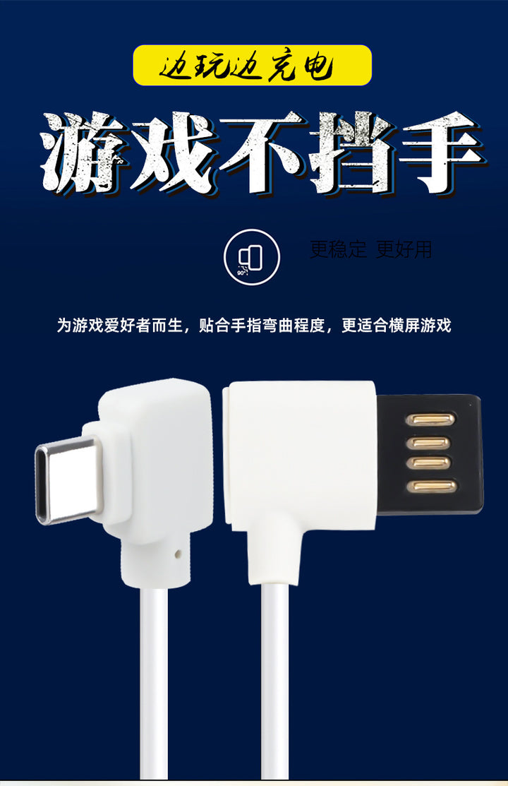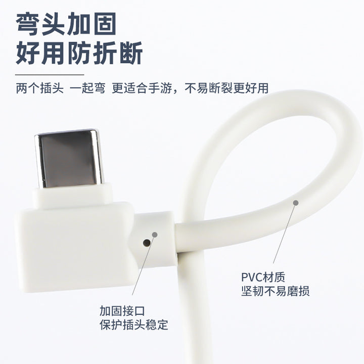 Wholesale fast charging data cable Double elbow fast charging cable Double-sided plug USB elbow data cable Type-c data cable