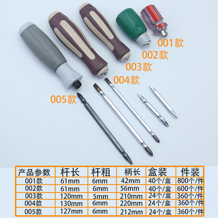 Double-purpose screwdriver * 001 radish head 2 inches * 50, Double screwdriver * 002 Glued radish head 2 inches * 50, Dual-purpose screwdriver * 003 rubber 3 inches 5 cm * 75, Double screwdriver * 004 rubber 4 inches 6 cm * 100, Double screwdriver * 005 rubber 4 inches 6 cm * 100 |