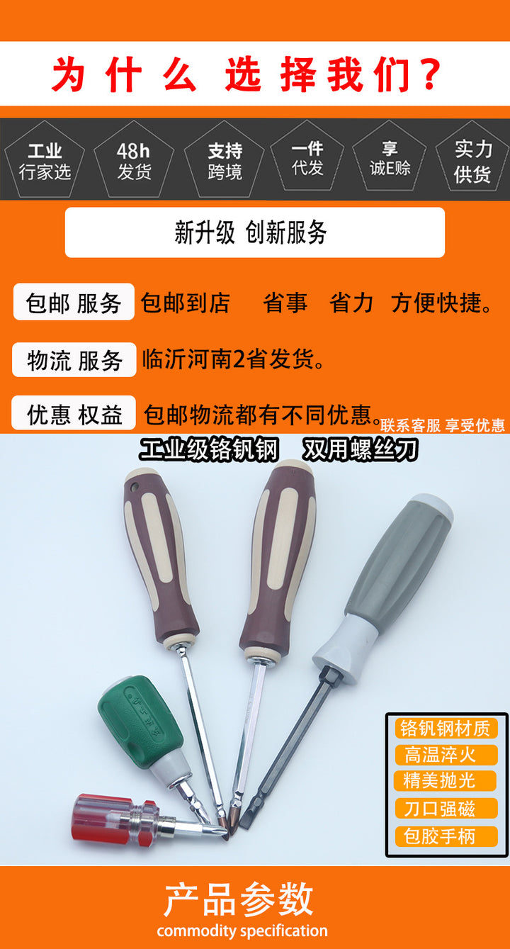Wholesale free shipping hardware industrial grade screwdriver dual-purpose screwdriver dual-purpose chrome vanadium alloy steel screwdriver strong ...