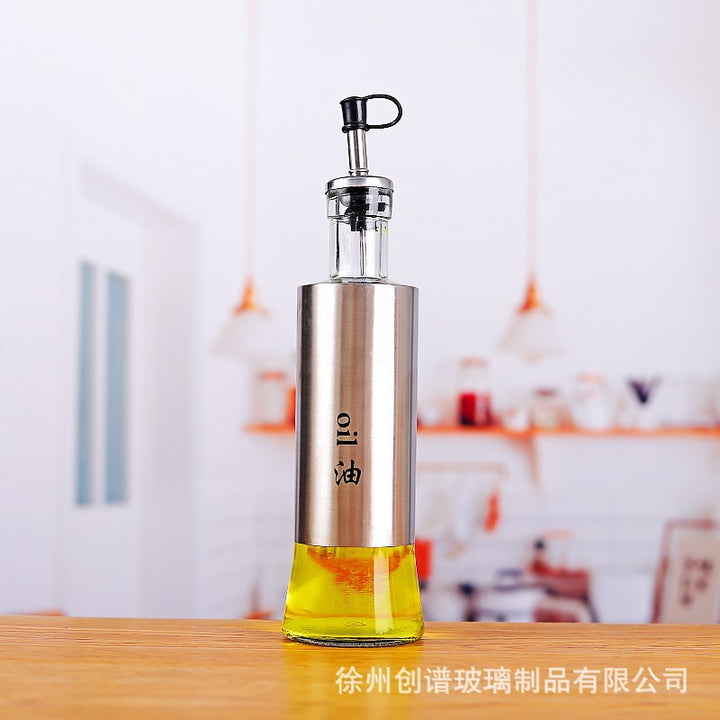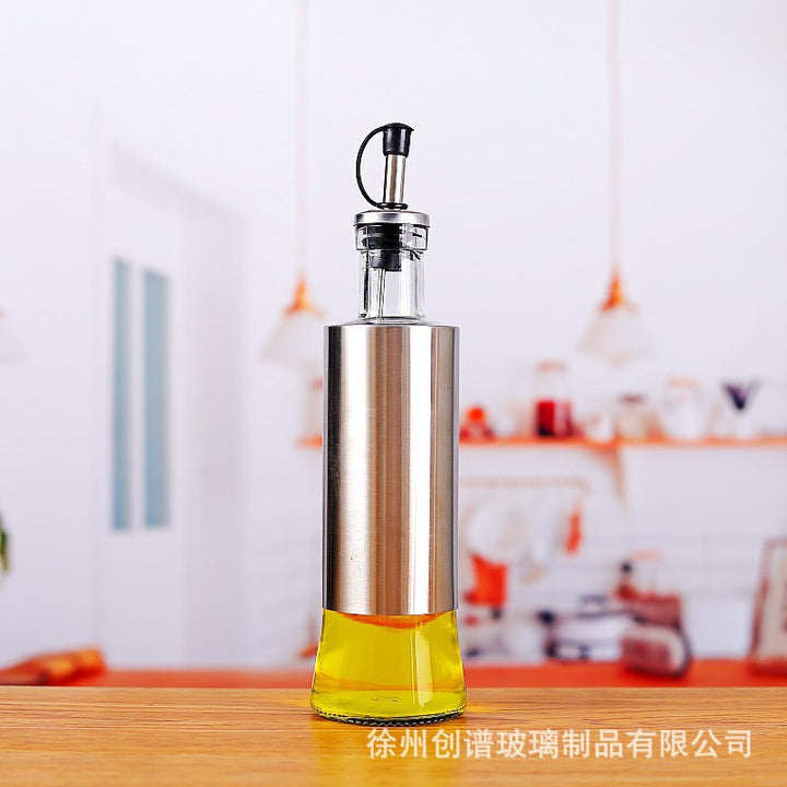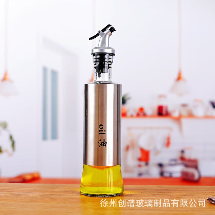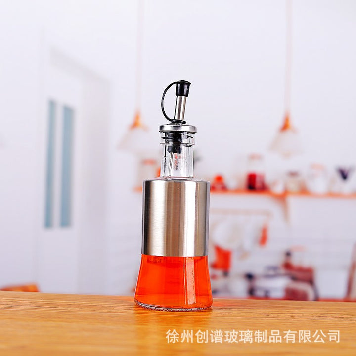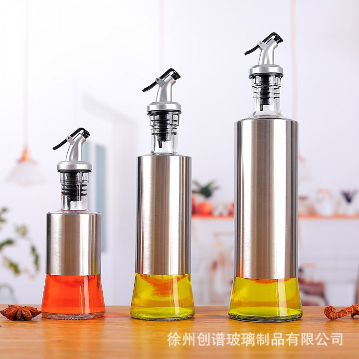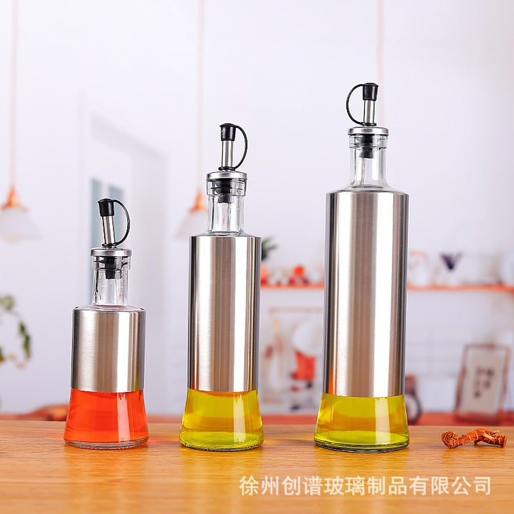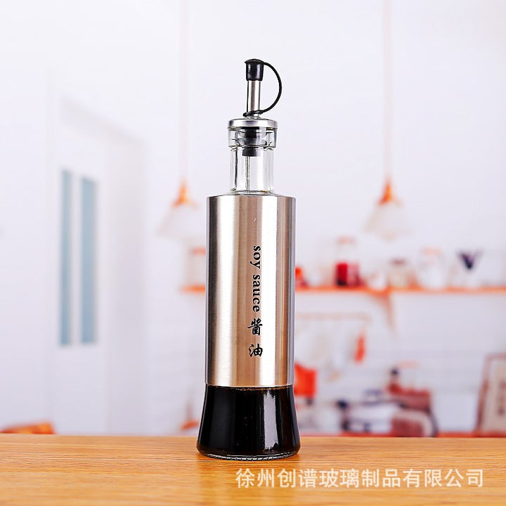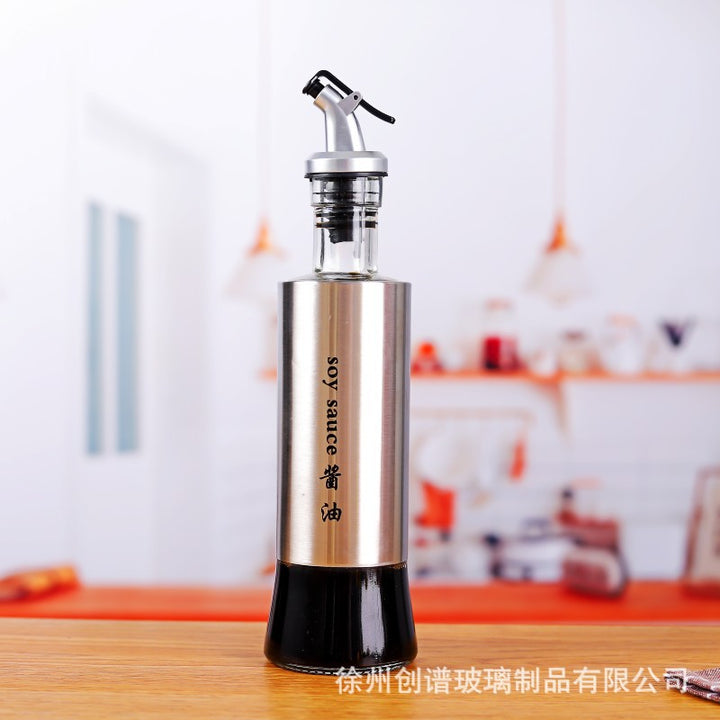Wholesale glass oil pot household stainless steel soy sauce vinegar bottle seasoning bottle set kitchen supplies oil control glass bottle