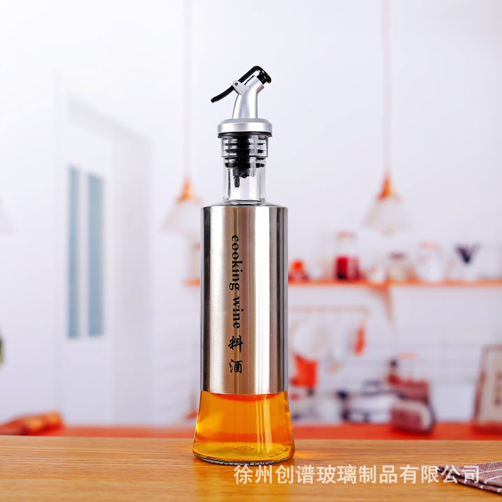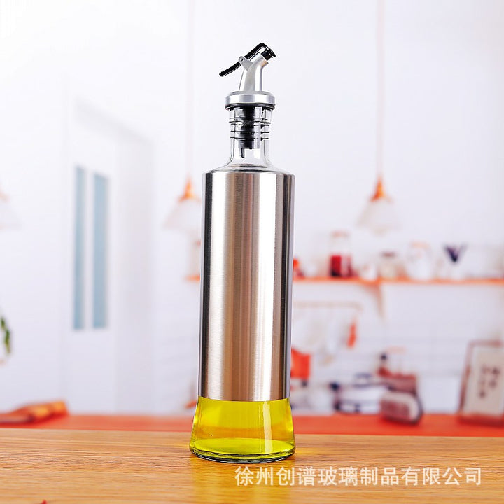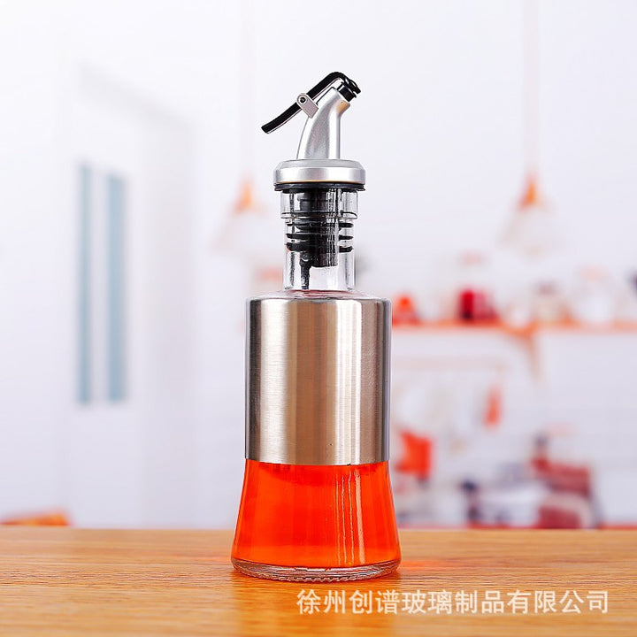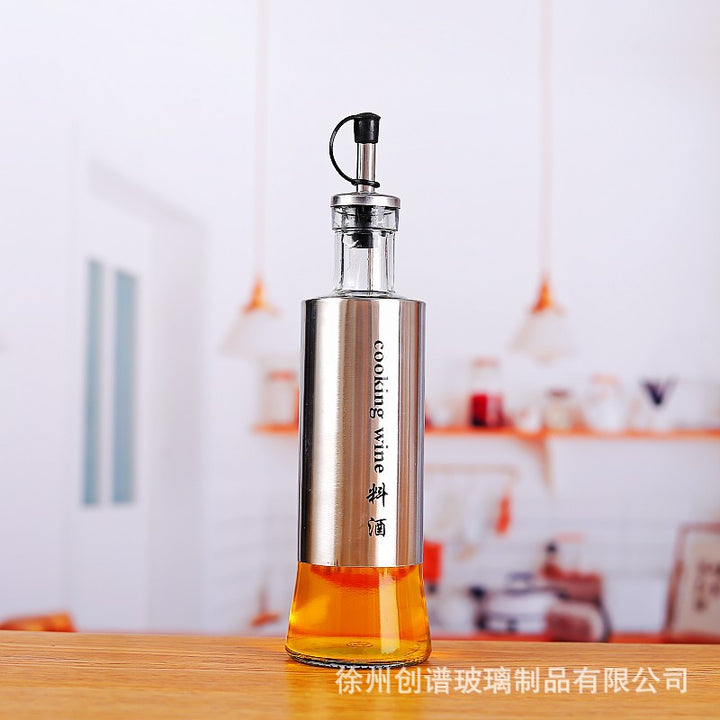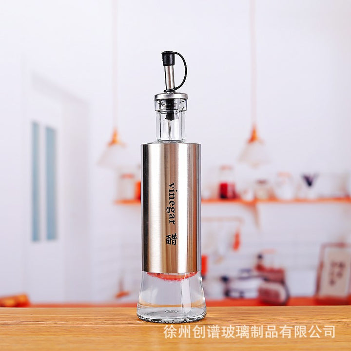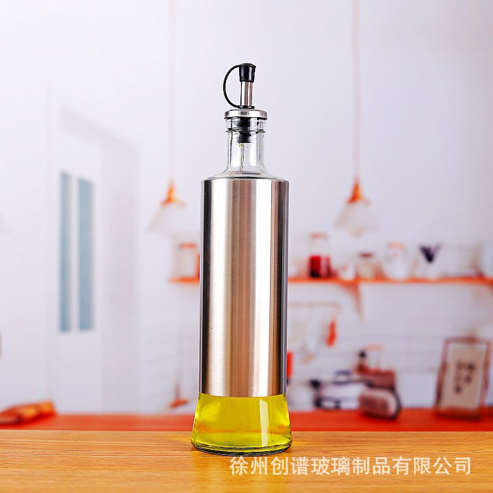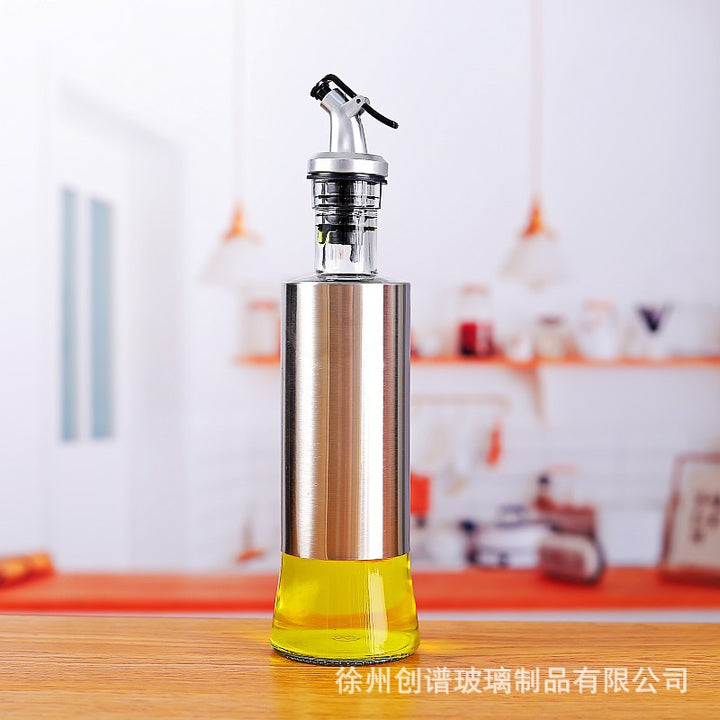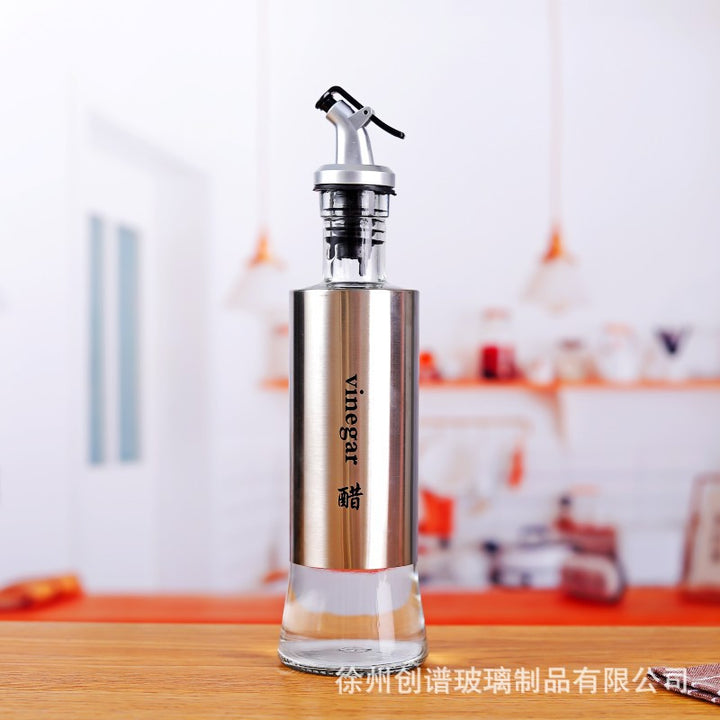 Wholesale glass oil pot household stainless steel soy sauce vinegar bottle seasoning bottle set kitchen supplies oil control glass bottle