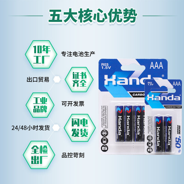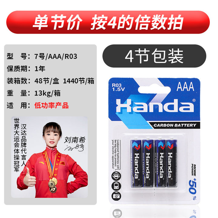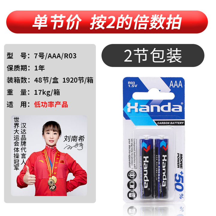 Wholesale Handa AAA No. 7 dry battery 1.5V carbon R03 remote control flipchart two 4 cards wi...