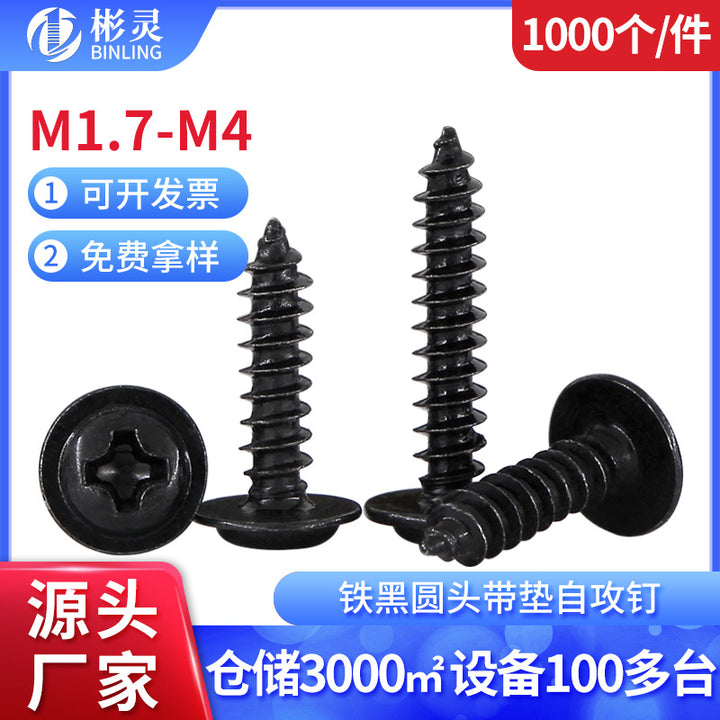 Wholesale Iron Black Cross Round Head Padded Self-Tapping Screw PWA Pointed Tail Self-Tapping...