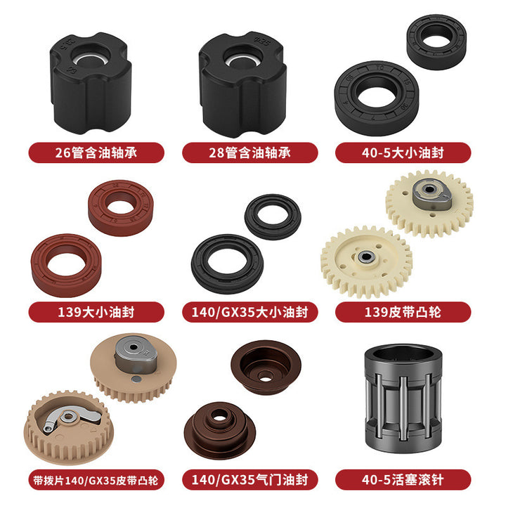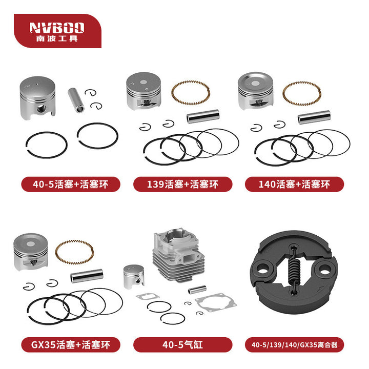 Lawn mower tubing, Lawn mower back frame, 40-5 cylinder, 40-5 Needle roller bearing, 40-5/139/140/GX35 Clutch, 26 tube oil bearing, 28 tube oil bearing, (40-5 piston + piston ring) 1 set, (139 piston + piston ring) 1 set, (140 piston + piston ring) 1 set, (GX35 piston + piston ring) 1 set, 40-5 size oil seal, 139 size oil seal, 140/GX35 size oil seal, 139 Belt Cam, Belt Cam with Pick 140/GX35 |