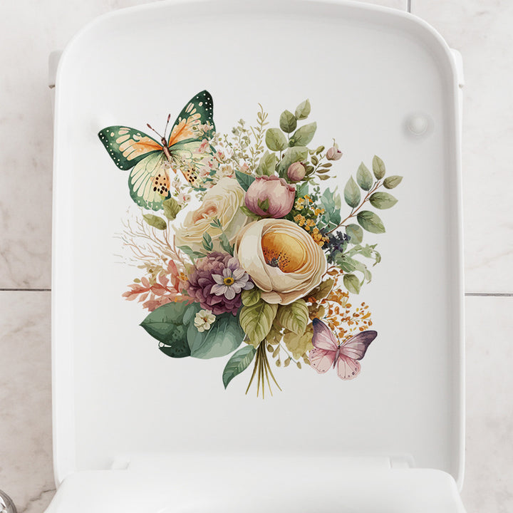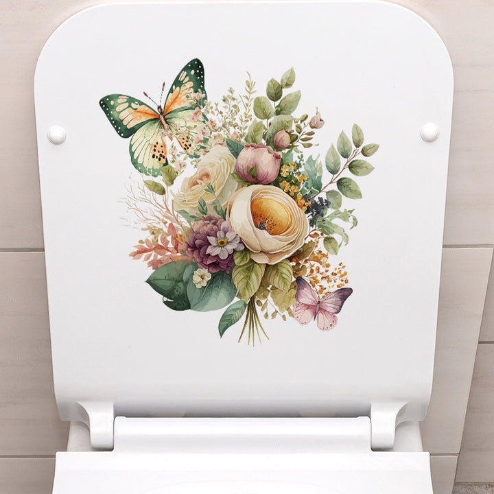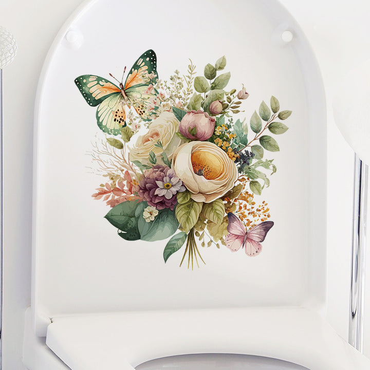 Wholesale Manufacturer Toilet Toilet Lid Butterfly Flower Sticker Waterproof Removable Plant Rose Flower Toilet Sticker