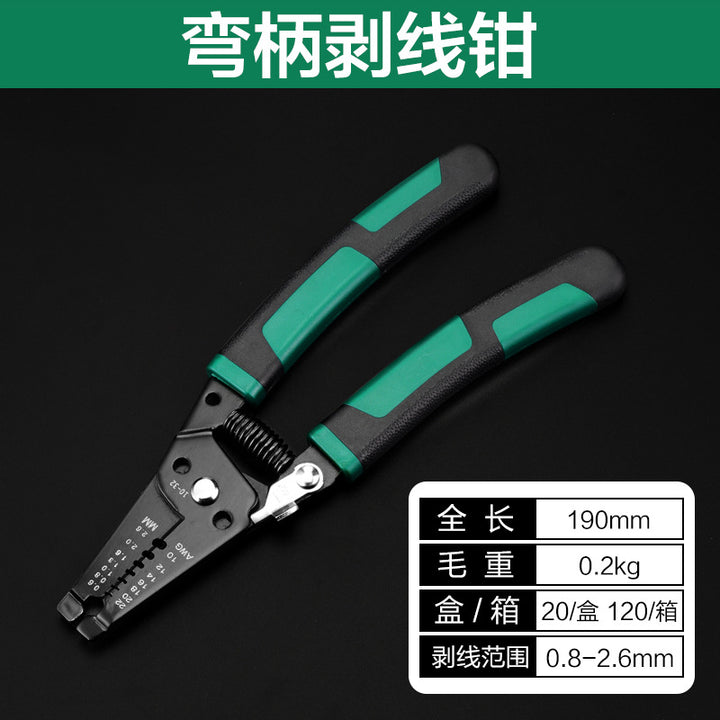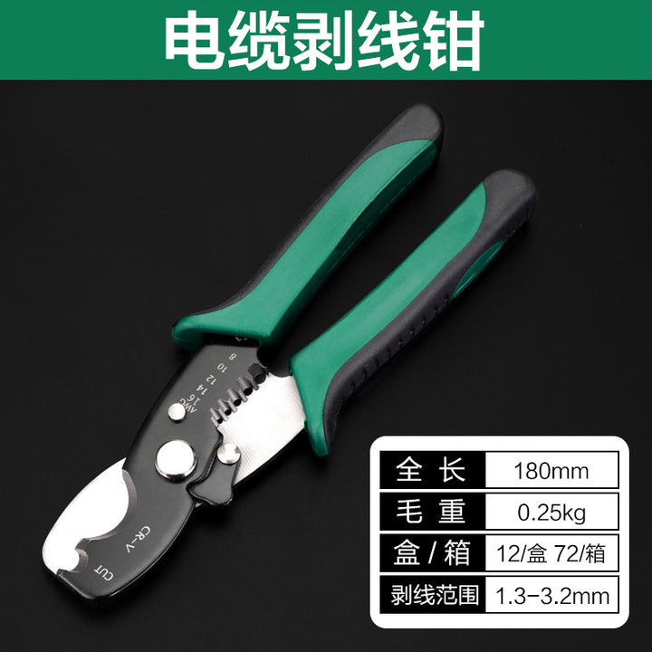 [New for 24 years] 28-in-one stripping pliers, 160 pcs/box, [New for 24 years] Universal wire stripping pliers, 120 pcs/box, [New for 24 years] Center stripping pliers, 130 pcs/box, [New for 24 years] Folding wire stripping pliers, 100 pcs/box, Single green handle wire strippers [17/box 170/piece], 绿黑柄剥线钳【20/盒 200/件】, 三合一多用剥线钳【15/盒 150/件】, 弯柄剥线钳【15/盒 150/件】, 压剥钳【14/盒 140/件】, 多功能电缆剥线钳【15/盒 150/件】, 9寸直头铁皮剪【12/盒 120/件】2, 9寸弯头铁皮剪【12/盒 120/件】 |