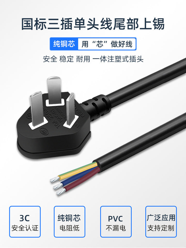 Wholesale national standard three plug-in word tail cable 0.75/1/1.5 square AC single head household appliances power cord