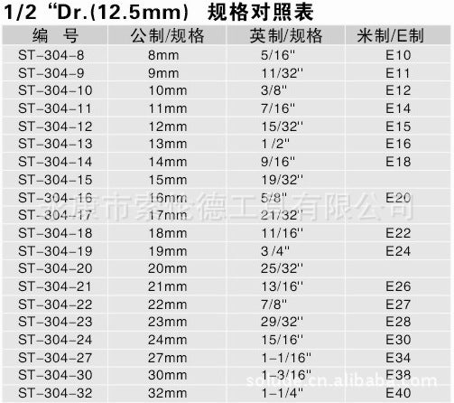 8MM, 9, 10, 11, 12, 13, 14, 15, 16, 17, 18, 19, 20, 21, 22, 23, 24, 27, 30, 32 |