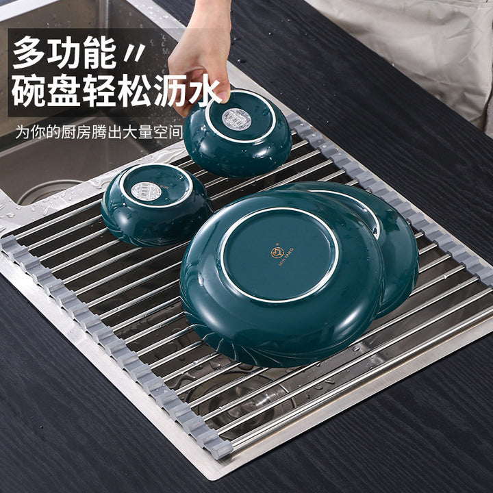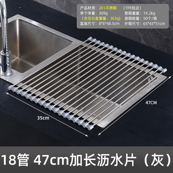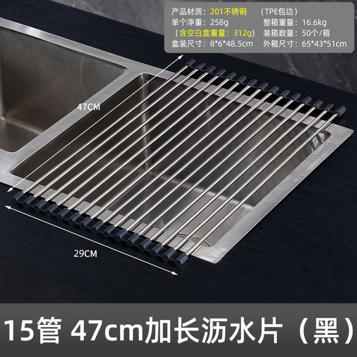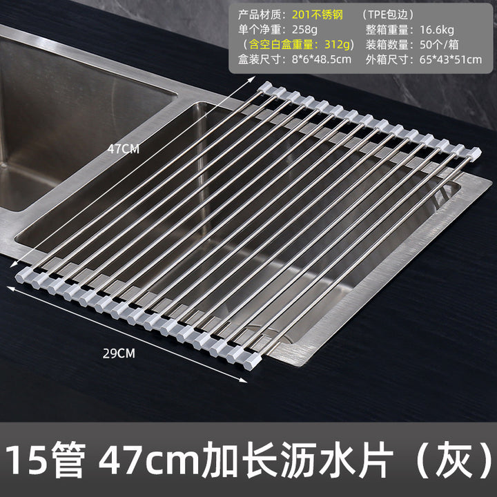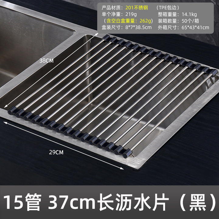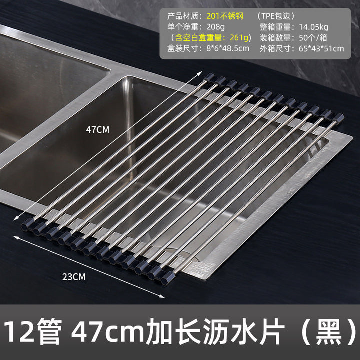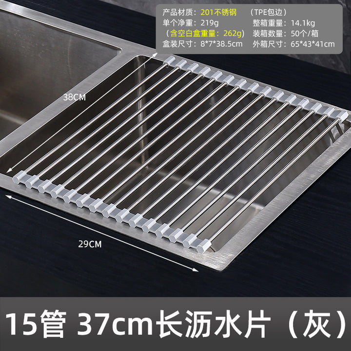 Wholesale Stainless Steel Drain Basket Sink Drain Rack Vegetable Basin Drain Pad Folding Shelf Above Kitchen Sink