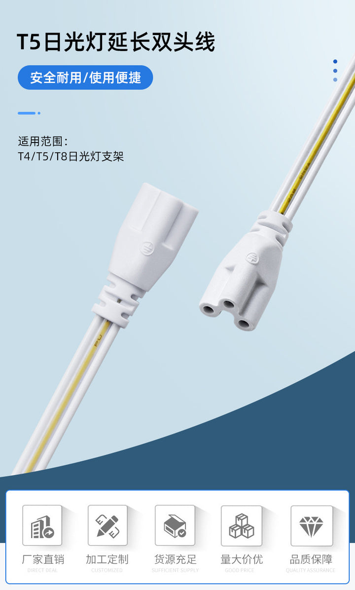 T4T5T8 fluorescent lamp double head three core extension cable |