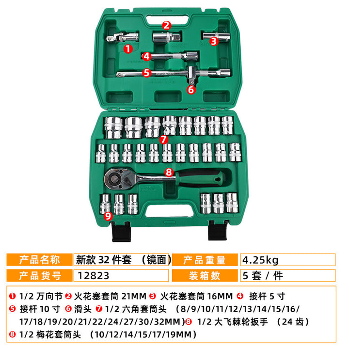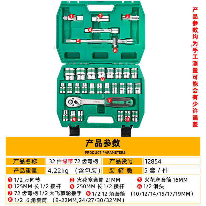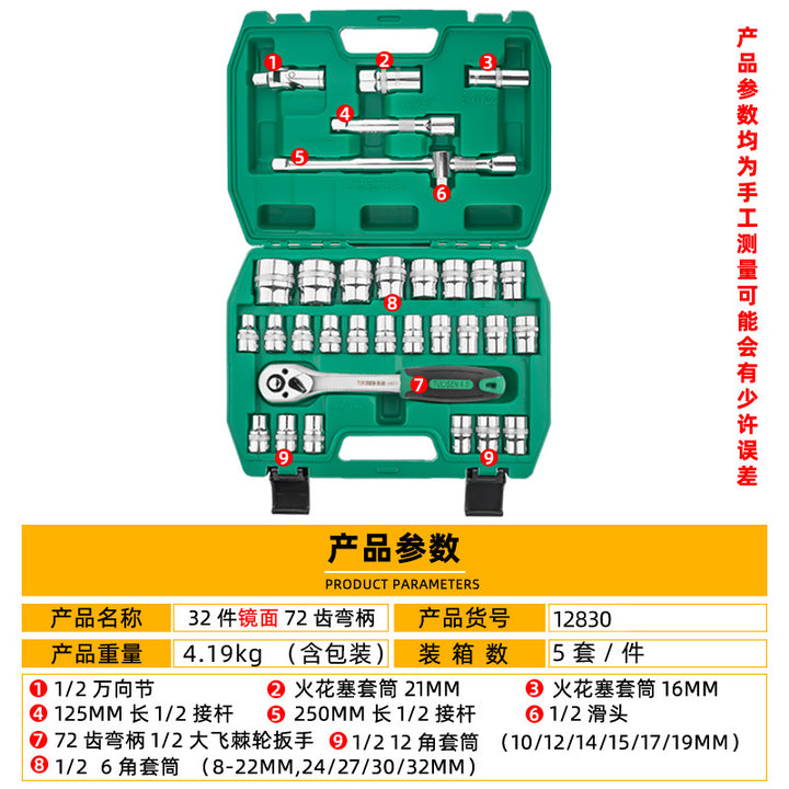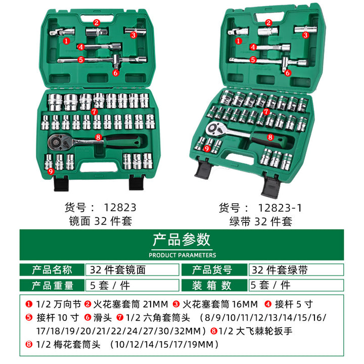 12823, new 24-tooth mirror 32-piece sleeve set, 5 sets/piece, 4.25kg, 12847, new 24-tooth green belt 32-piece sleeve set, 5 sets/piece, 4.25kg, 12830,新款72齿镜面32件套筒组套,5套/件,4.25kg, 12854,新款72齿绿带32件套筒组套,5套/件,4.25kg |