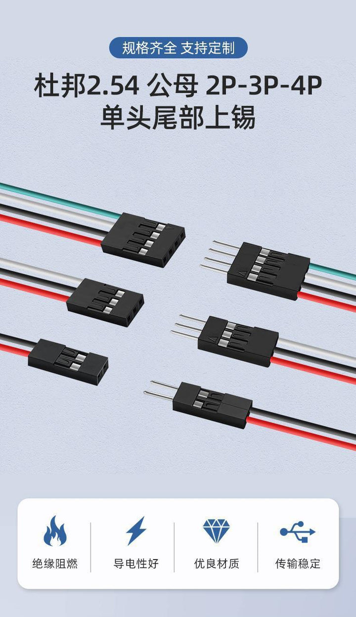 2P DuPont 2.54 single male, 3P DuPont 2.54 single male, 4P DuPont 2.54 single male, 2P DuPont 2.54 single female head, 3P DuPont 2.54 single female head, 4P DuPont 2.54 single female head |