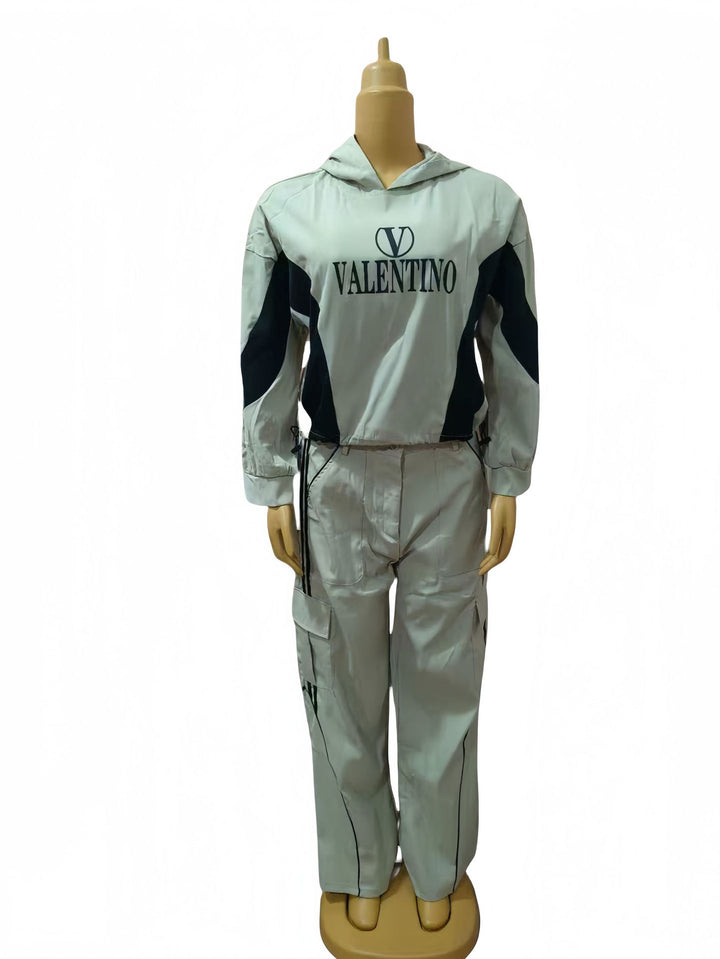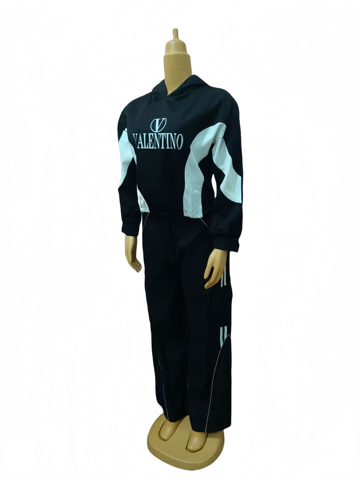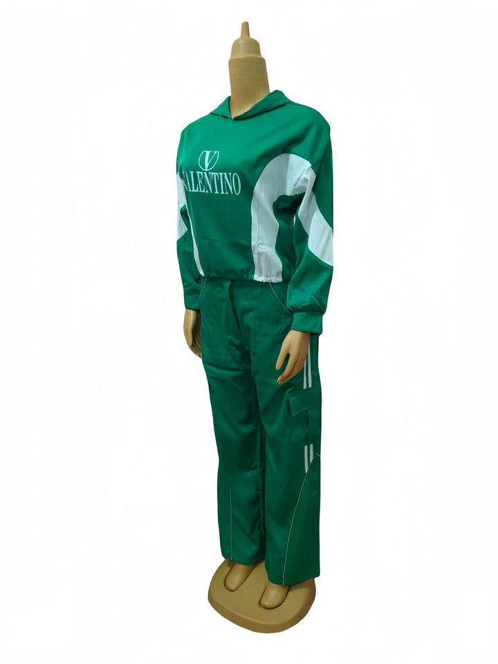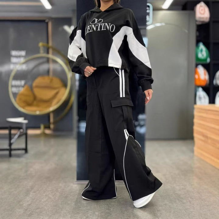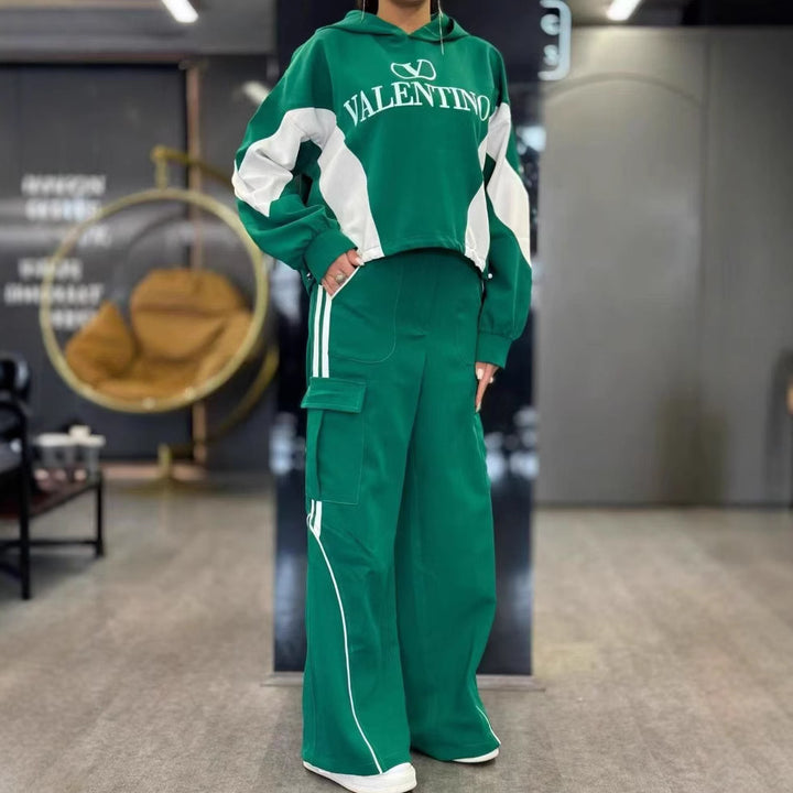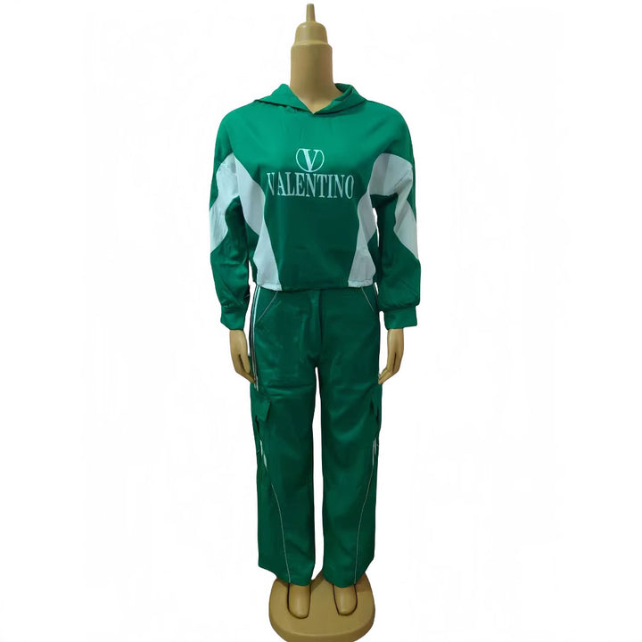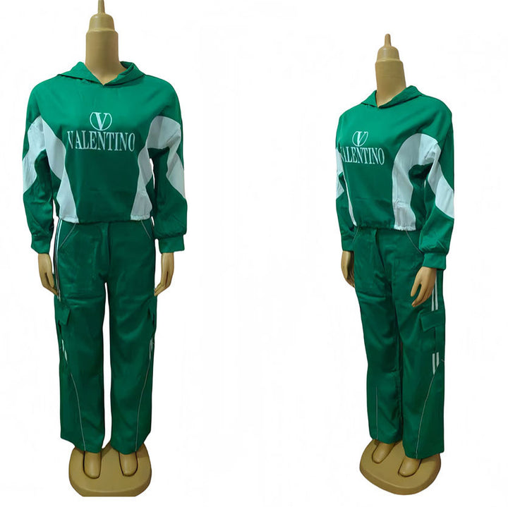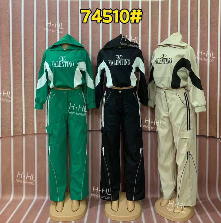 Wholesale women's clothing new color matching hooded fashion casual suit 74510 #