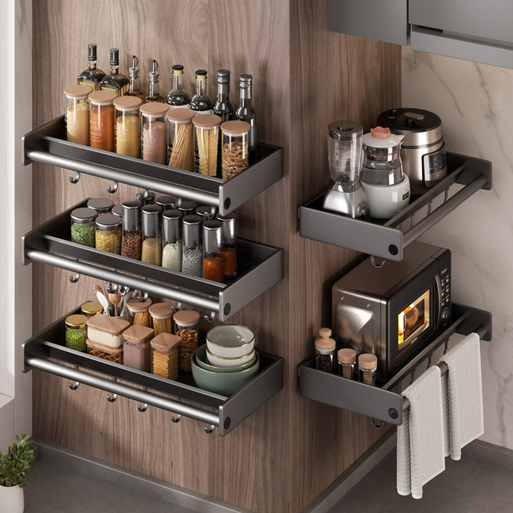 Wide kitchen rack No punching Wall-mounted gun ash seasoning Seasoning Multifunctional househ...