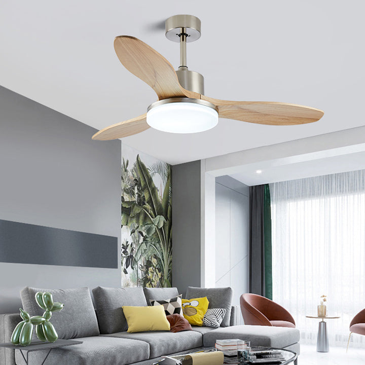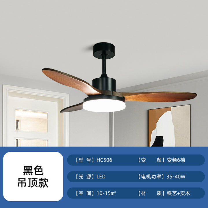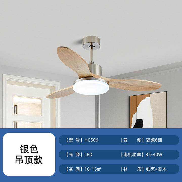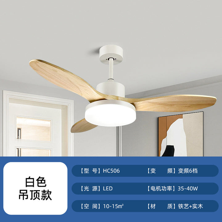 Wide pressure intelligent modern solid wood ceiling fan light fan light living room dining room bedroom simple modern LED ceiling fan