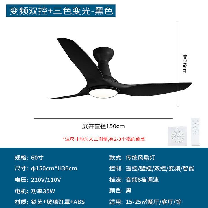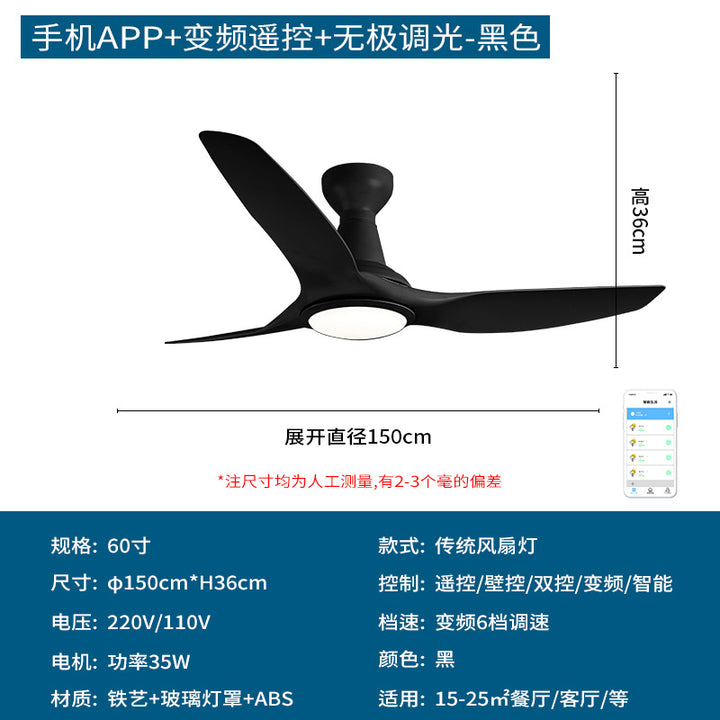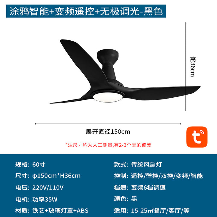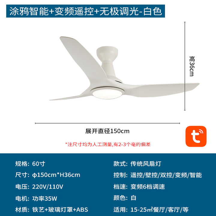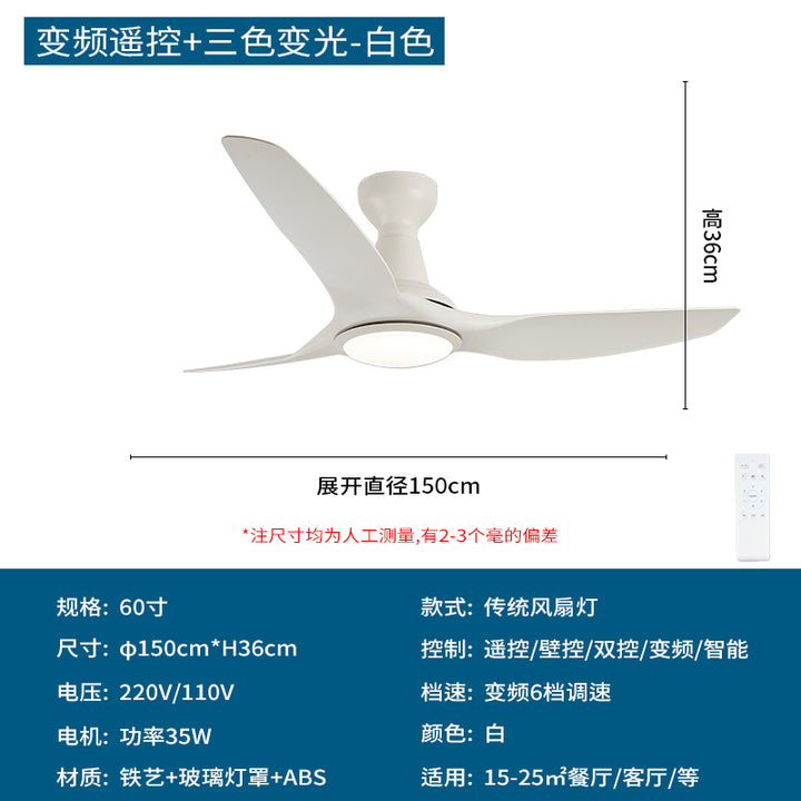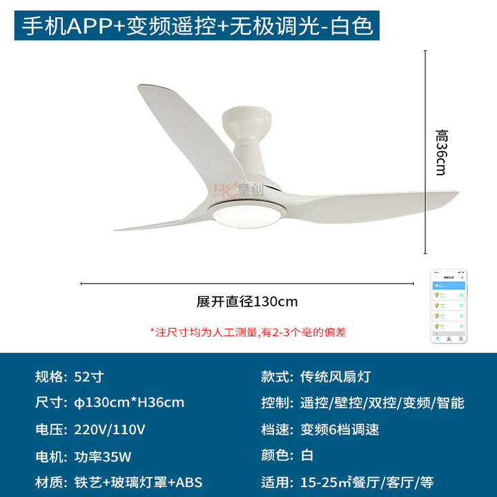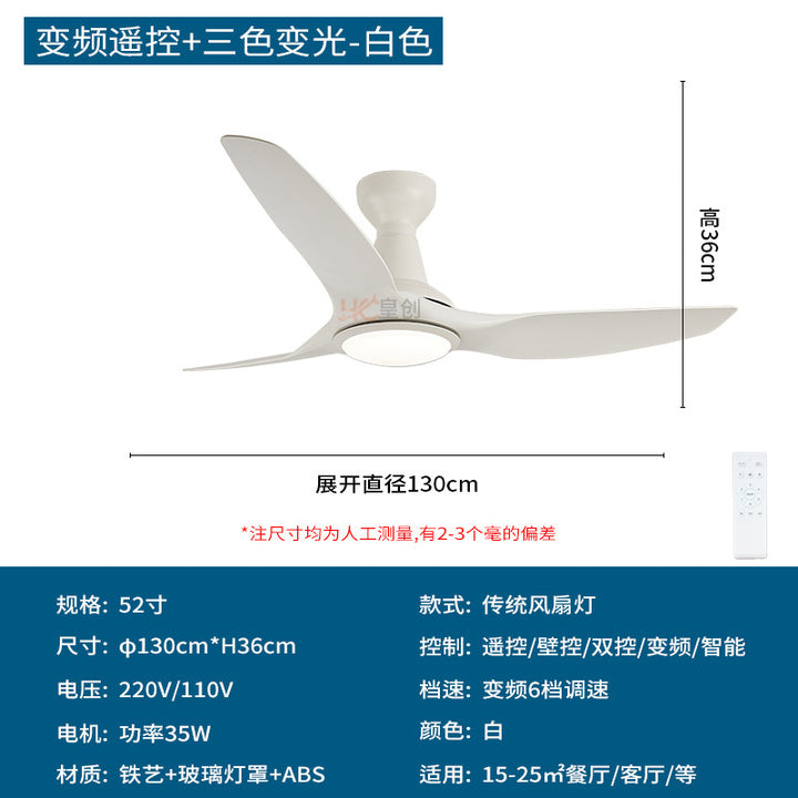 Wind variable frequency ceiling fan light Nordic dining room living room fan light Intelligent remote control Commercial ceiling fan light