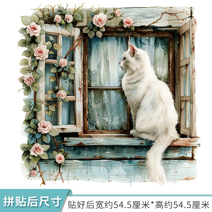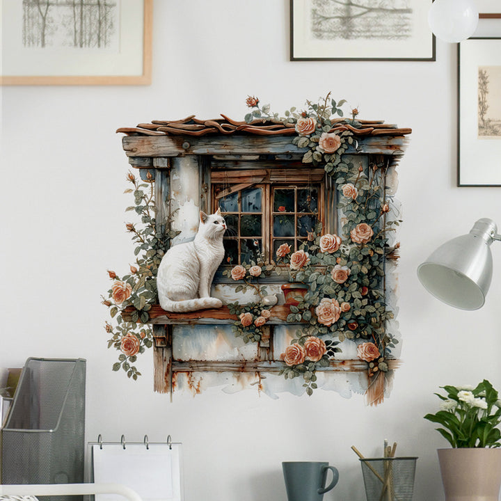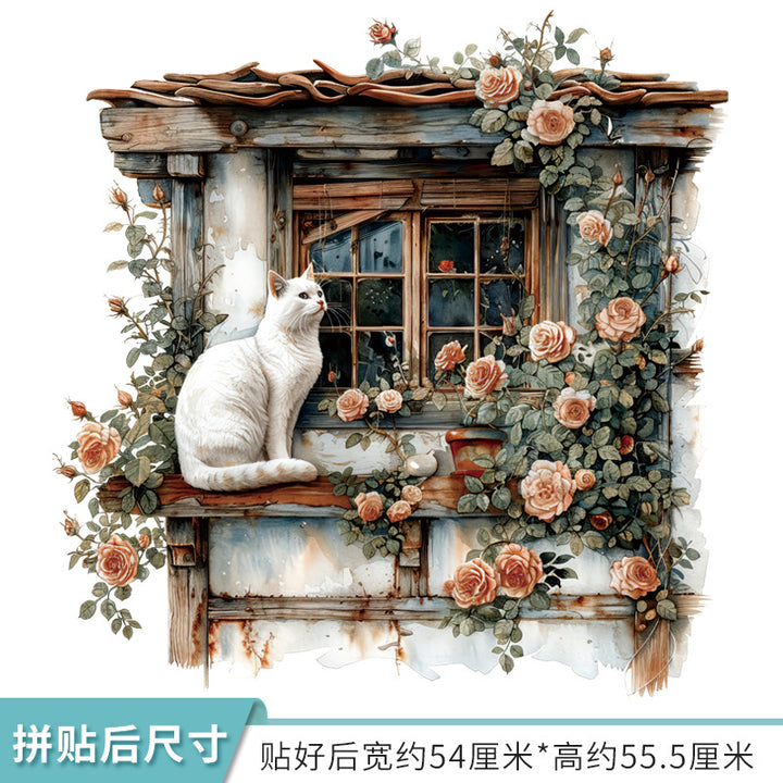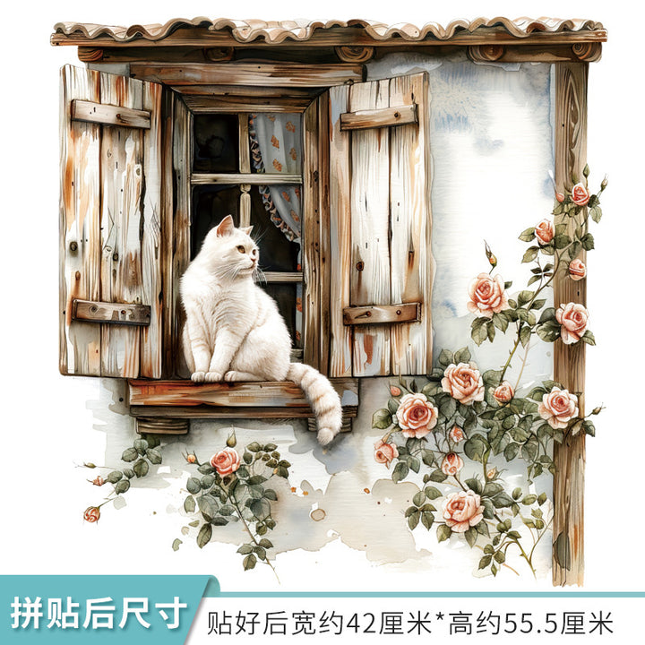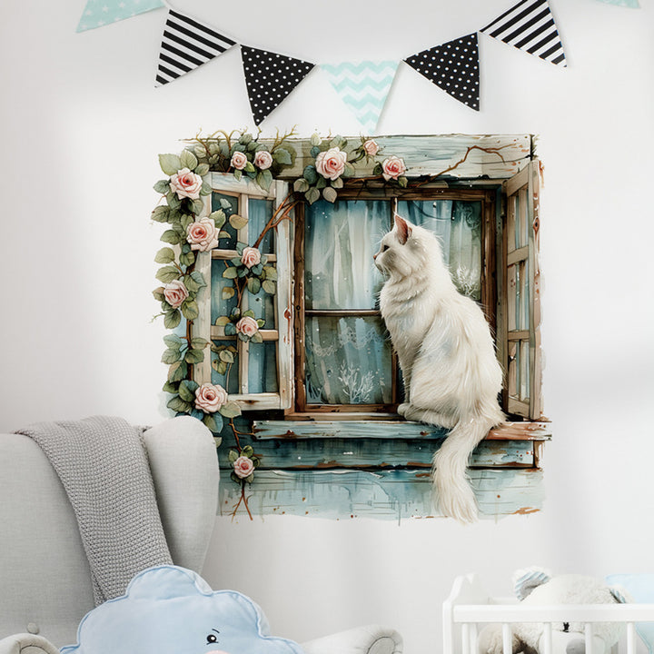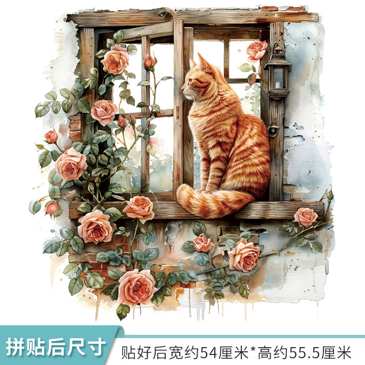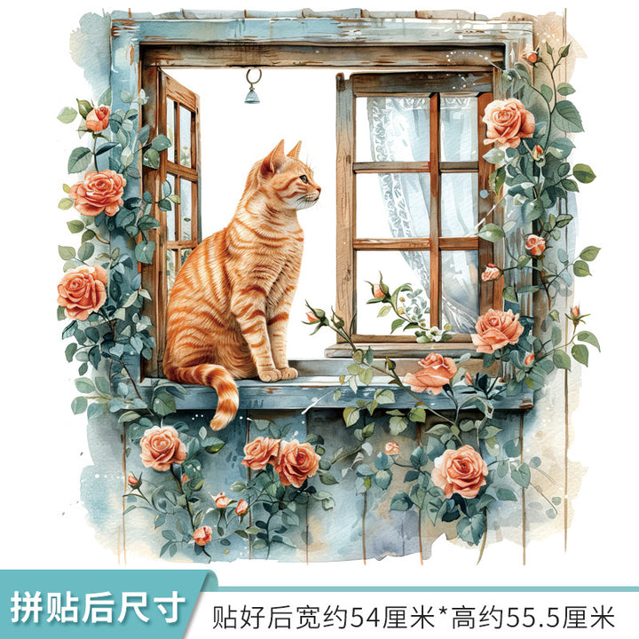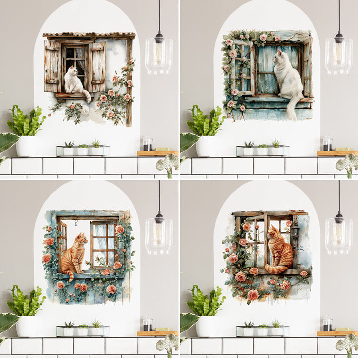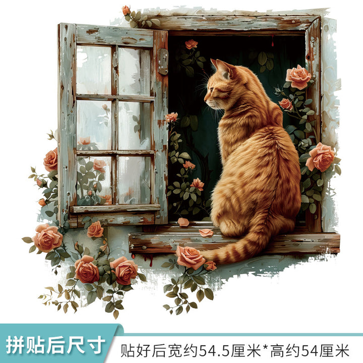Window sill cat wall sticker living room sofa background wall decoration sticker children's r...
