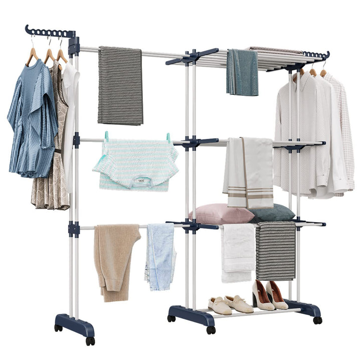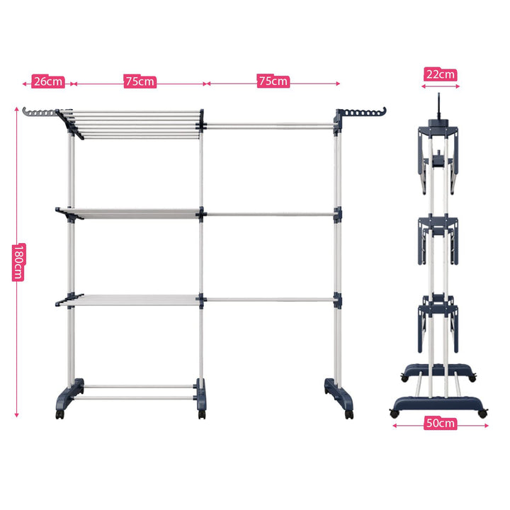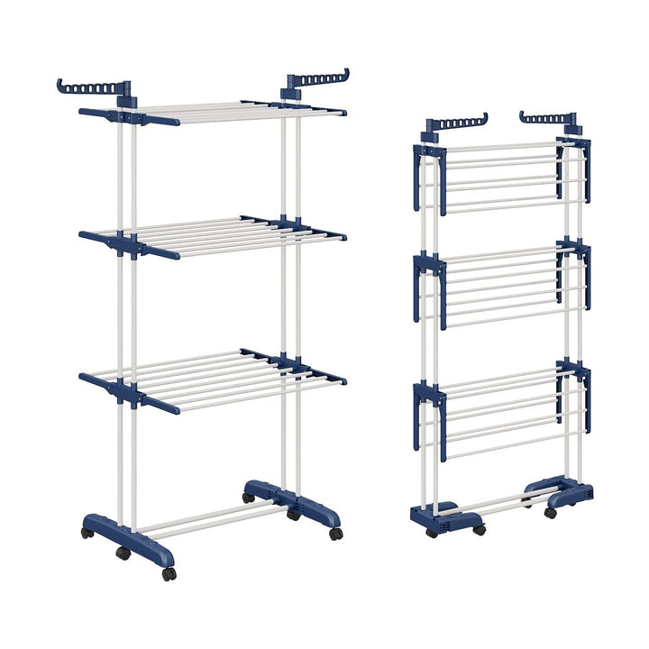 Wing-shaped floor drying rack Folding drying rack with wheels Multifunctional three-layer tow...