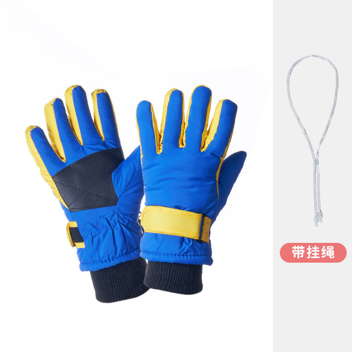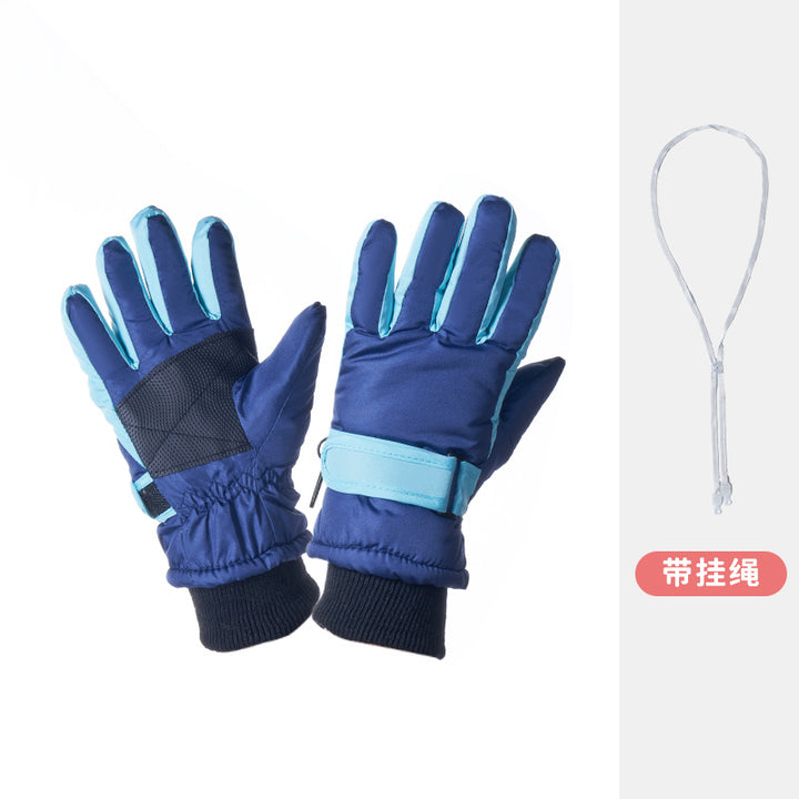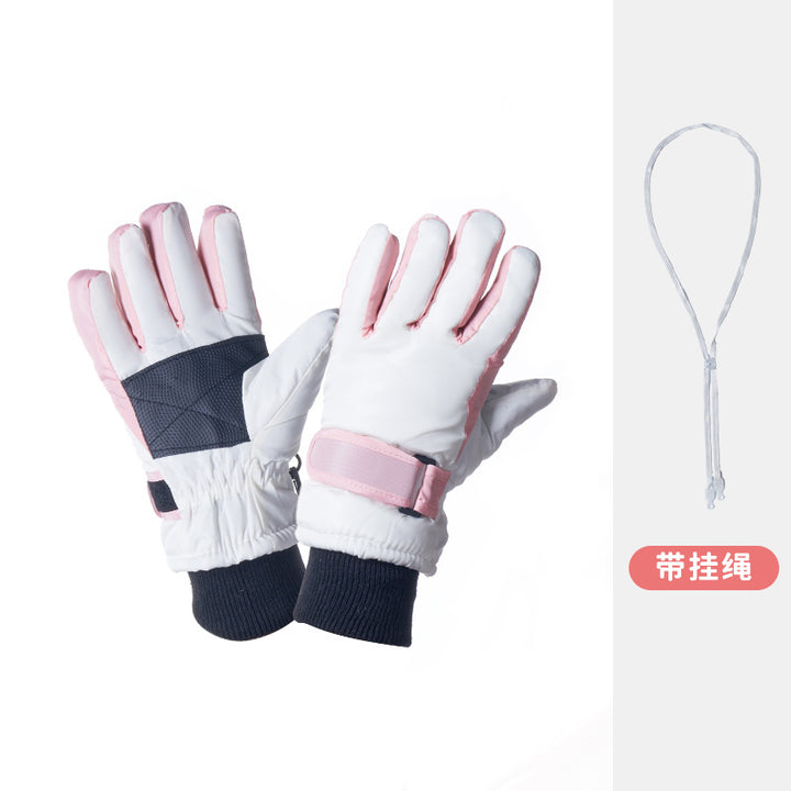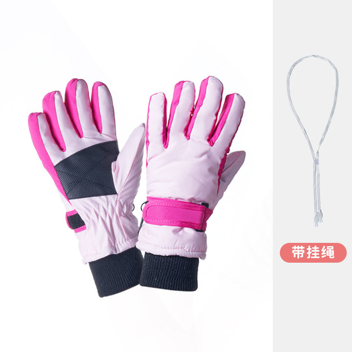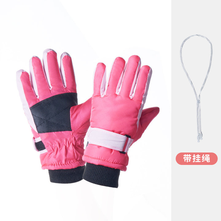 Winter children's ski gloves with lanyards 3-9 years old, velvet men's and women's windproof,...