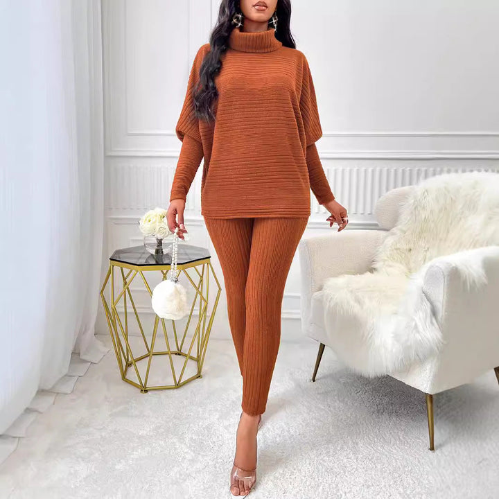 Winter fashionable and sexy knitted women's clothing independent station new solid color turtleneck casual loose long-sleeved women's suit