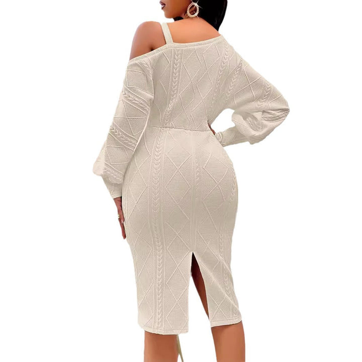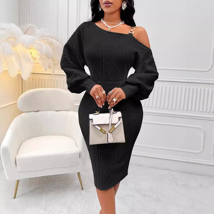 Winter hot sale European and American shoulder lantern sleeves solid color waist hip dress independent station sexy style women's clothing