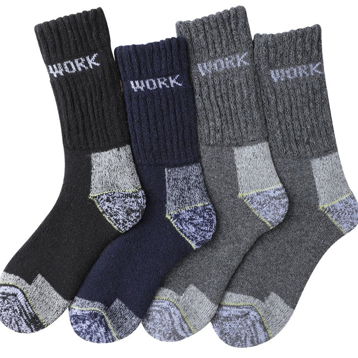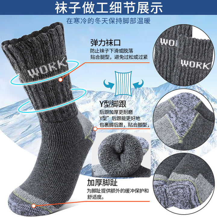 Winter men's fleece cold-proof work socks thickened warm terry medium tube socks breathable and sweat-absorbing dark commuter socks
