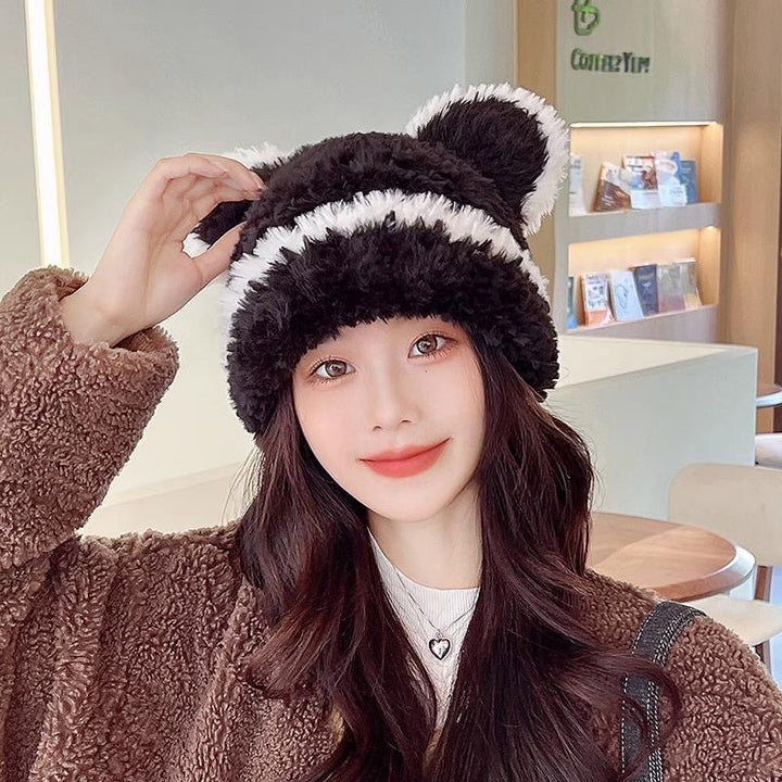 Winter new hat women's fashion versatile plush knitted hat warm fluffy thickened face little bear hat