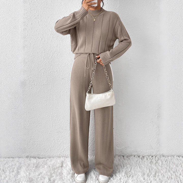 Winter warm knitted suit Autumn Japan and Korea new women's split-ended sweater wide-leg pants fashion two-piece set Cross-border wholesale