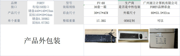 Wired keyboard and mouse set FV68 business office keyboard and mouse portable desktop compute...