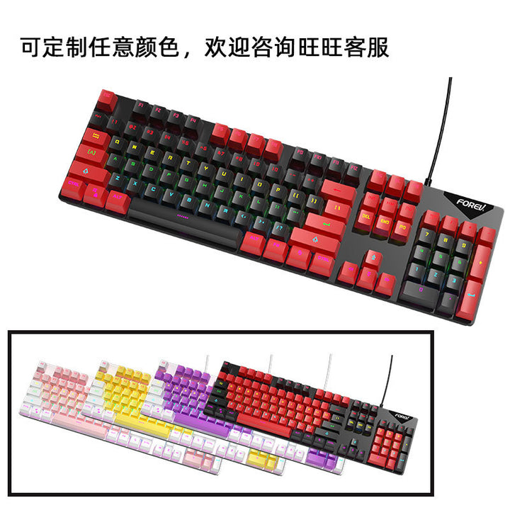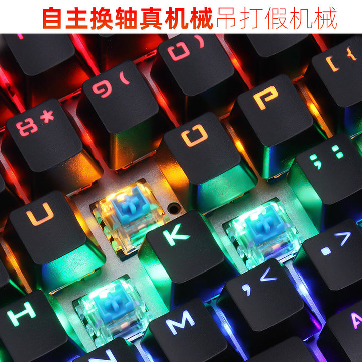 Wired real mechanical keyboard and mouse set FVQ609 replaceable and pluggable blue axis mechanical keyboard e-sports game luminous set