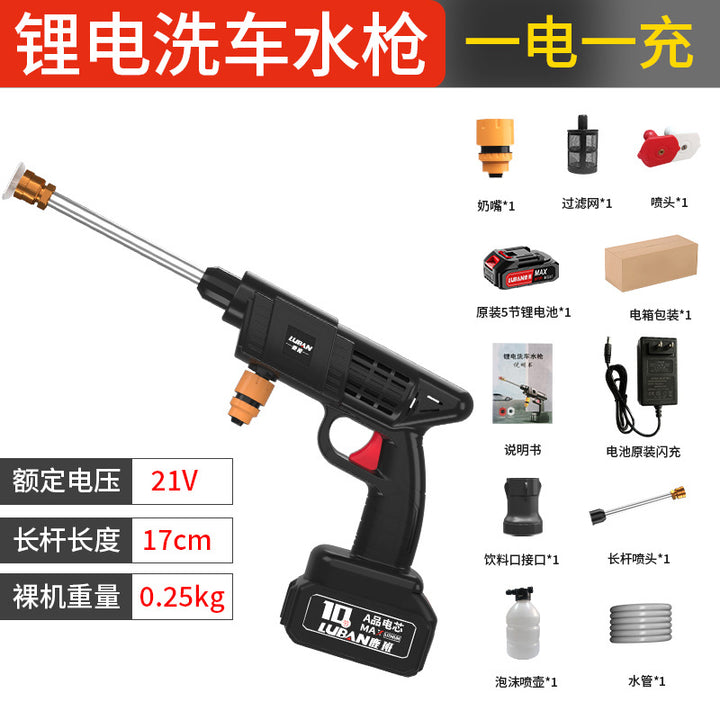 Deluxe multi-functional car wash water gun (five sections) one electricity and one charger packaging, Deluxe multi-functional car wash water gun (five sections) two batteries and one charger packaging, Deluxe multi-functional car wash water gun (five sections) one electricity and one charge + plastic box, Deluxe multi-functional car wash water gun (five sections) two batteries and one charging + plastic box, Supreme multi-functional car wash water gun (ten sections) one battery and one charge + toolbox |