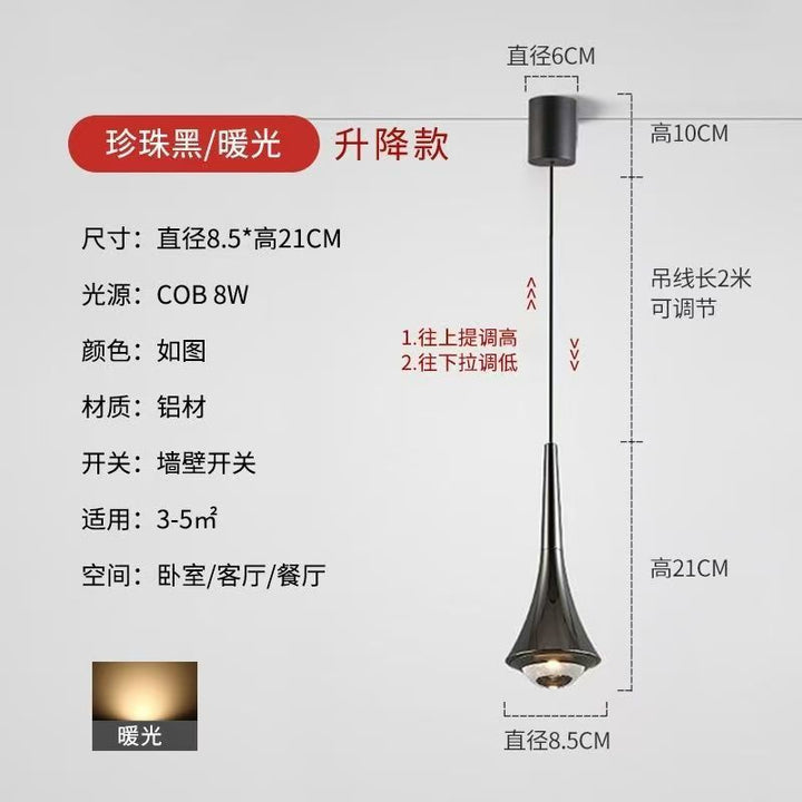 Wiring-free cable-free rechargeable chandelier, charging liftable touch switch, simple modern bedroom bedside chandelier