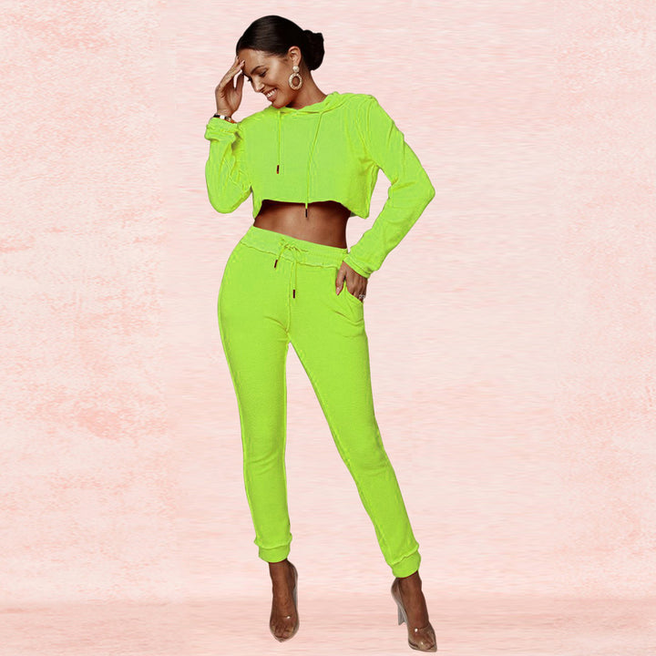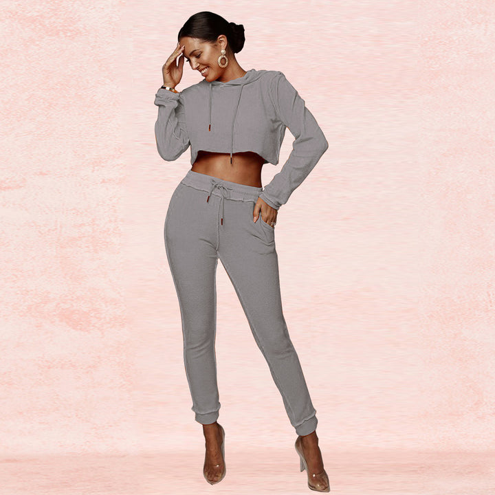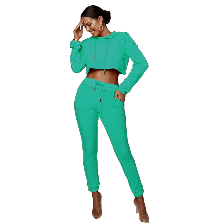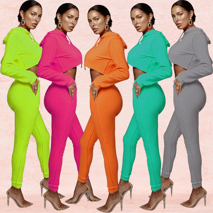 Wish eBay European and American women's clothing autumn fashion solid color casual sports sweater women's two-piece set H3276