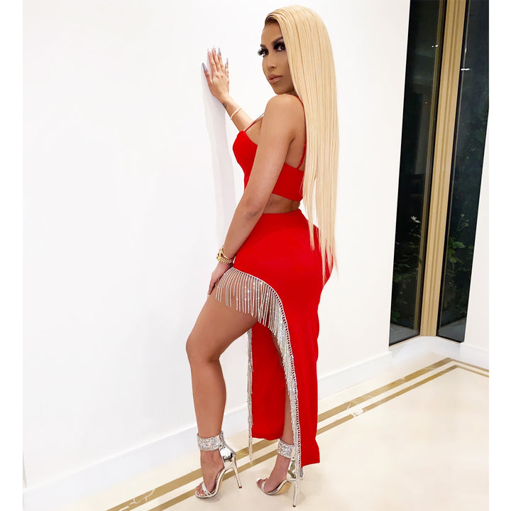 WISH eBay2020 European and American women's clothing fashion rhinestone sexy suspender nightclub dress dress H3356