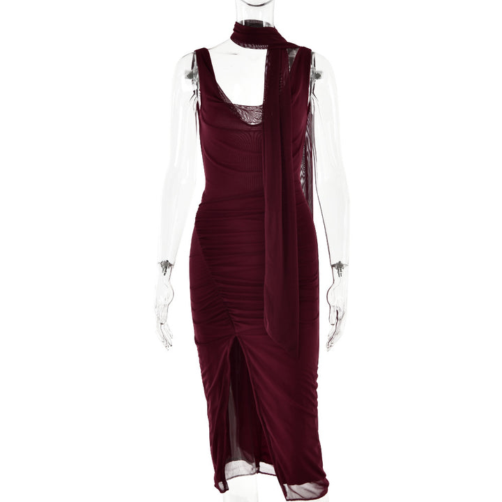 wish hot-selling new products, sexy trend mesh stitching swing collar suspender open fork backless hip skirt
