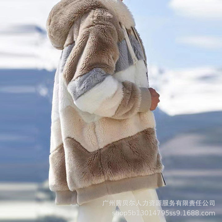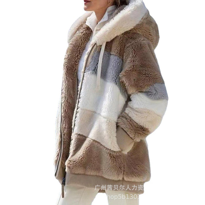Wish independent station 2023 hot sale new autumn and winter loose plush multi-color hooded coat women