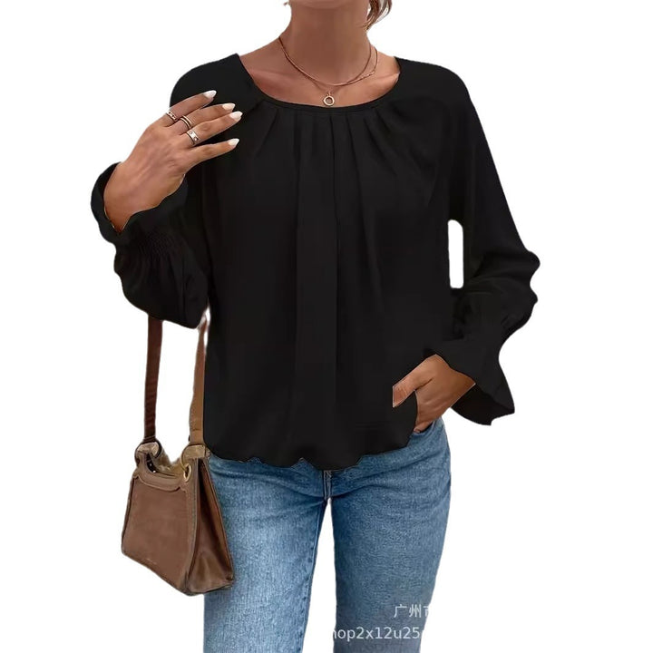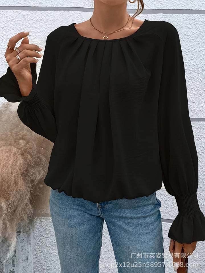 wish new temperament women's clothing commuter casual solid color crew neck shirt women's top spot