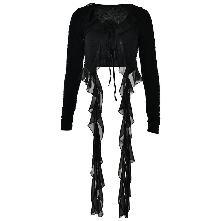 black, Texture special knitted fabric + chiffon splicing + three-dimensional flower embellishment, Qi code spot |