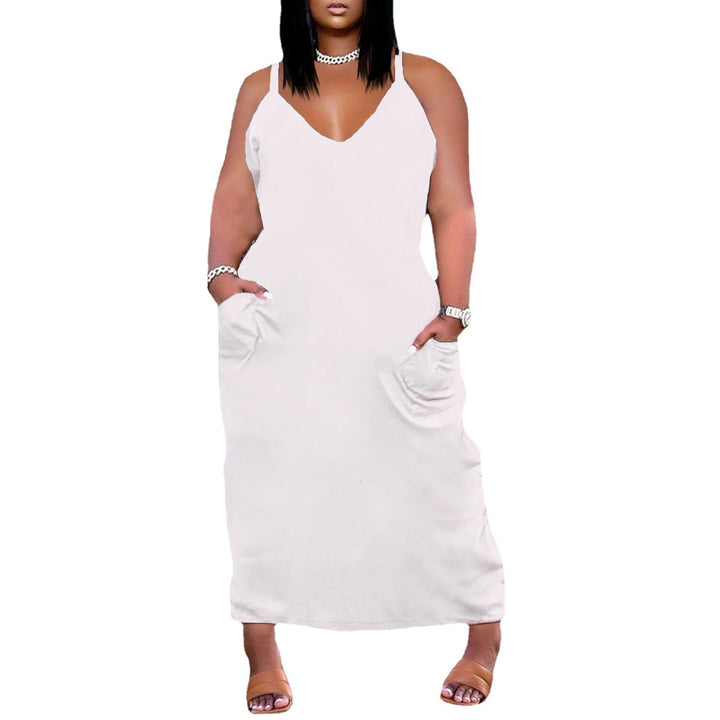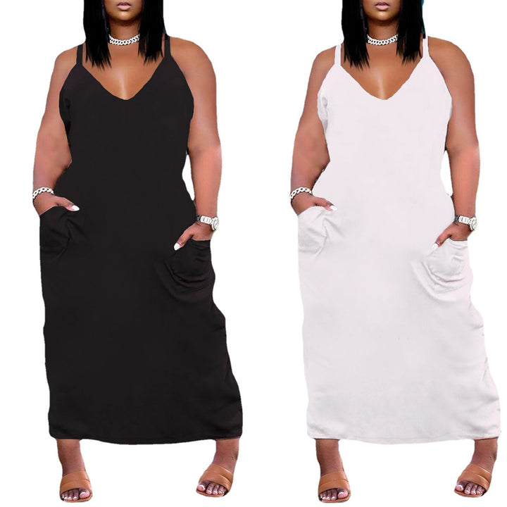 WK2372 European and American sexy V-neck loose slim suspender medium and long large size dress