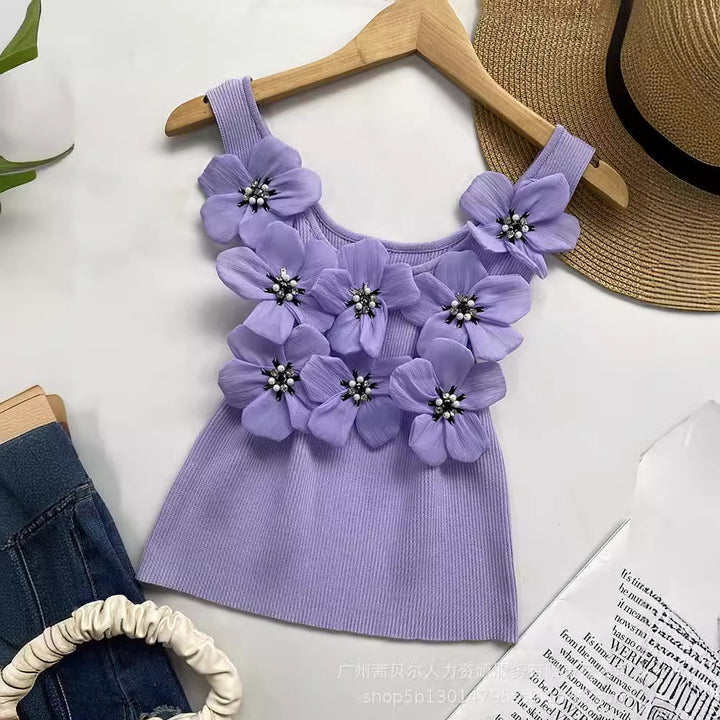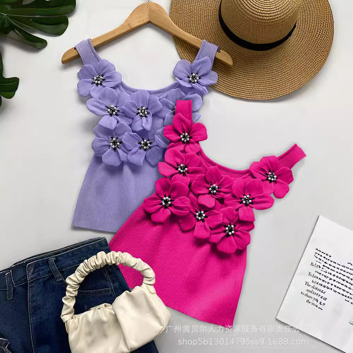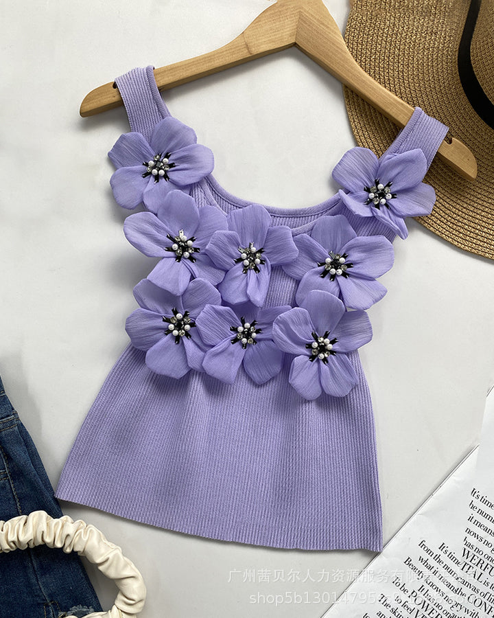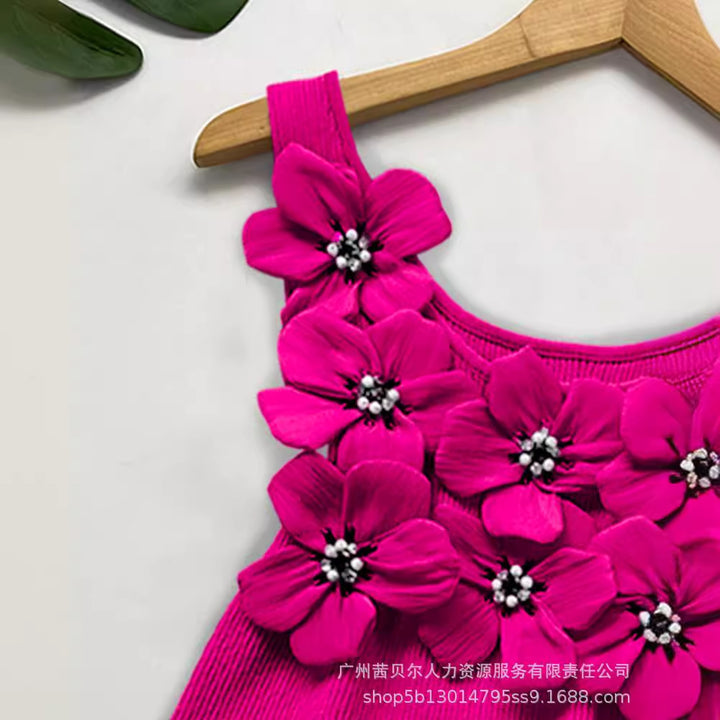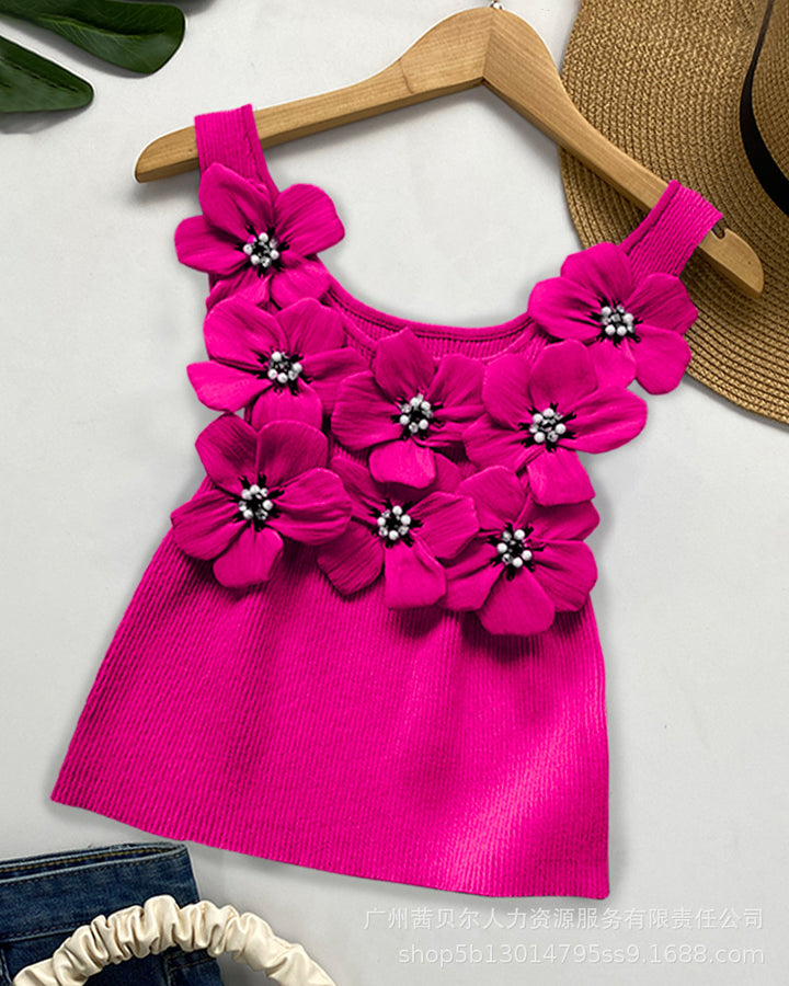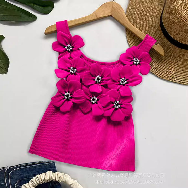 WMMO0002 popular, European and American three-dimensional flower hot diamond bubble bead sleeveless vest